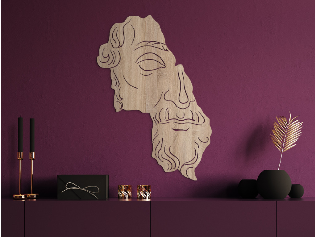 Die Holzdekoration Marc Aurel zeigt das Gesicht dieser bedeutsamen historischen Persönlichkeit. Die feinen Züge und die scheinbare Beschädigung erwecken den Eindruck, dass das Gesicht von Marc Aurel in der Zeit gefangen ist. Dank seiner geheimnisvollen Atmosphäre verleiht es jedem Raum eine historische Note und erweckt Bewunderung.
