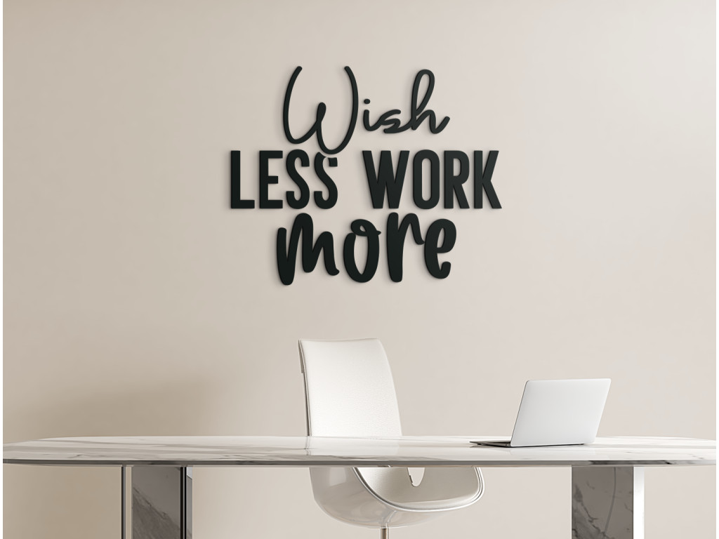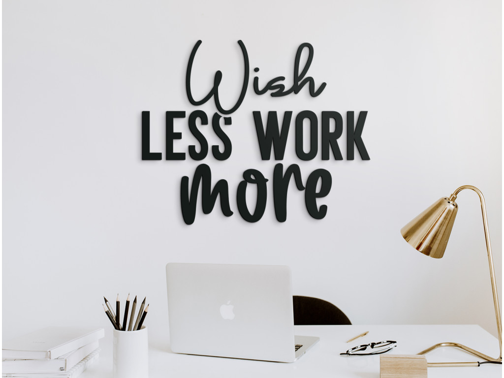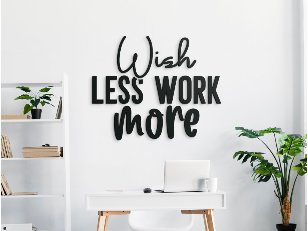 Wir alle brauchen ab und zu eine Prise Motivation. Die Dekoration Wish less work more mit ihrem kreativen Design in 2 Größen und 8 Farboptionen ist perfekt dafür. Beim Blick an die Wand ermutigt der Sticker in englischer Sprache zum Handeln und erinnert daran, mit den Füßen fest auf dem Boden zu bleiben. Der ideale Platz für das Zitat ist daher ein Kinder- oder Studentenzimmer, ein Büro oder ein Fitnessstudio.