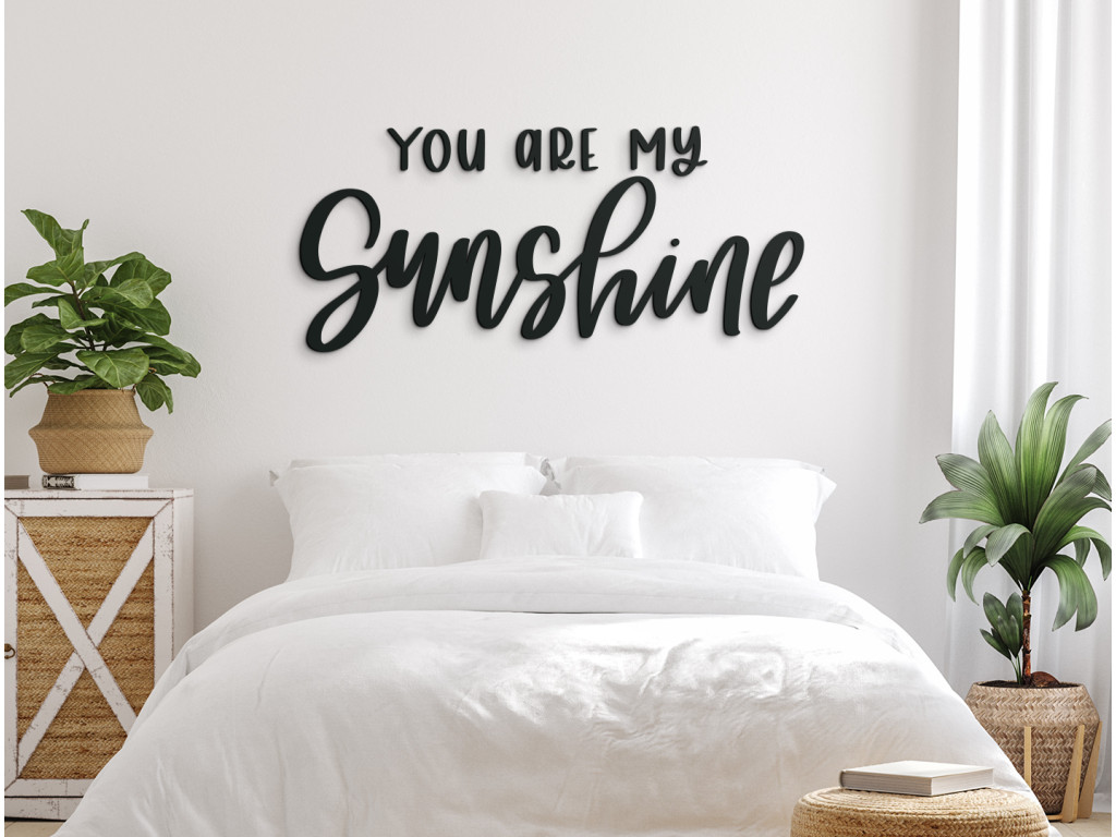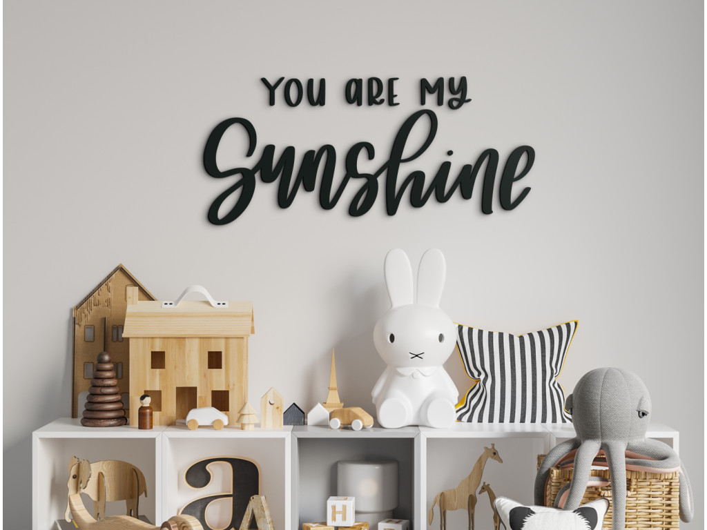 Das Holzzitat You are my sunshine, oder übersetzt Du bist mein Sonnenschein, ist eine schöne Dekoration mit einer positiven Botschaft, die, wenn sie betrachtet wird , nicht nur den Tag eines geliebten Menschen, sondern jedes Familienmitglieds aufhellen wird. Sie können aus 3 Größen und 8 Holzfarben wählen, so dass Sie es perfekt mit anderen Elementen Ihrer Einrichtung abstimmen können.