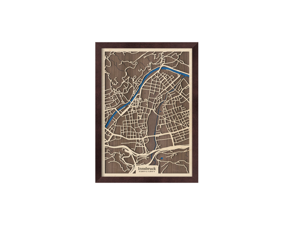 Innsbruck, das Juwel Tirols in Österreich, verzaubert seine Besucher mit einer einzigartigen Harmonie aus Geschichte und natürlicher Umgebung. Im Schatten der imposanten Alpengipfel liegt die Stadt am Inn und versprüht authentischen Gebirgs-Charme. Unsere hochmoderne 3D-Karte bildet das Gewirr von Straßen, Wegen und Wasserstraßen originalgetreu ab und bringt ein lebendiges Porträt von Innsbruck zu Ihnen nach Hause. Die Karten aus der Kollektion drevko CITY können in bis zu acht Farbkombinationen und zwei Größen ausgewählt werden.