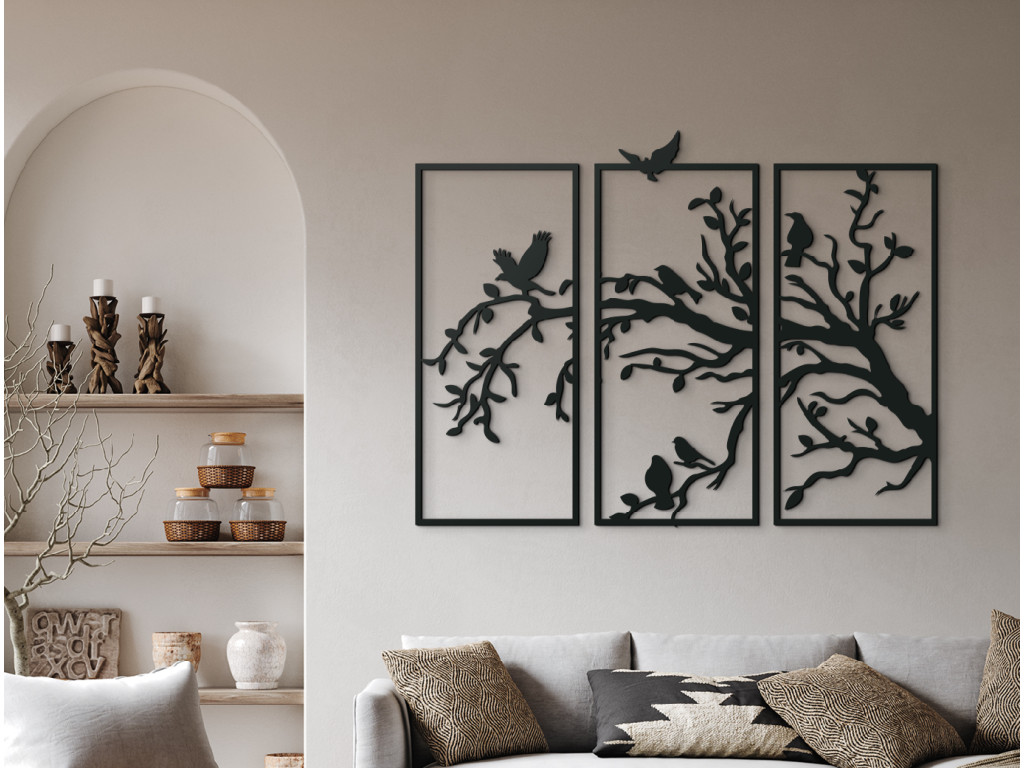 3-teiliges Holzbild VÖGEL AUF EINEM BAUM