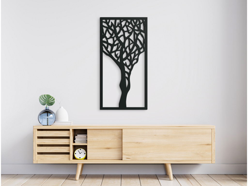 Sie suchen eine Dekoration für einen neu eingerichteten Innenraum? Das originelle hölzerne Wandbild ist ein dekoratives Accessoire für moderne Haushalte. Die Baumkrone erstreckt sich über die gesamte Fläche und reicht bis zum Bilderrahmen. Das Bild passt in jeden Innenraum.