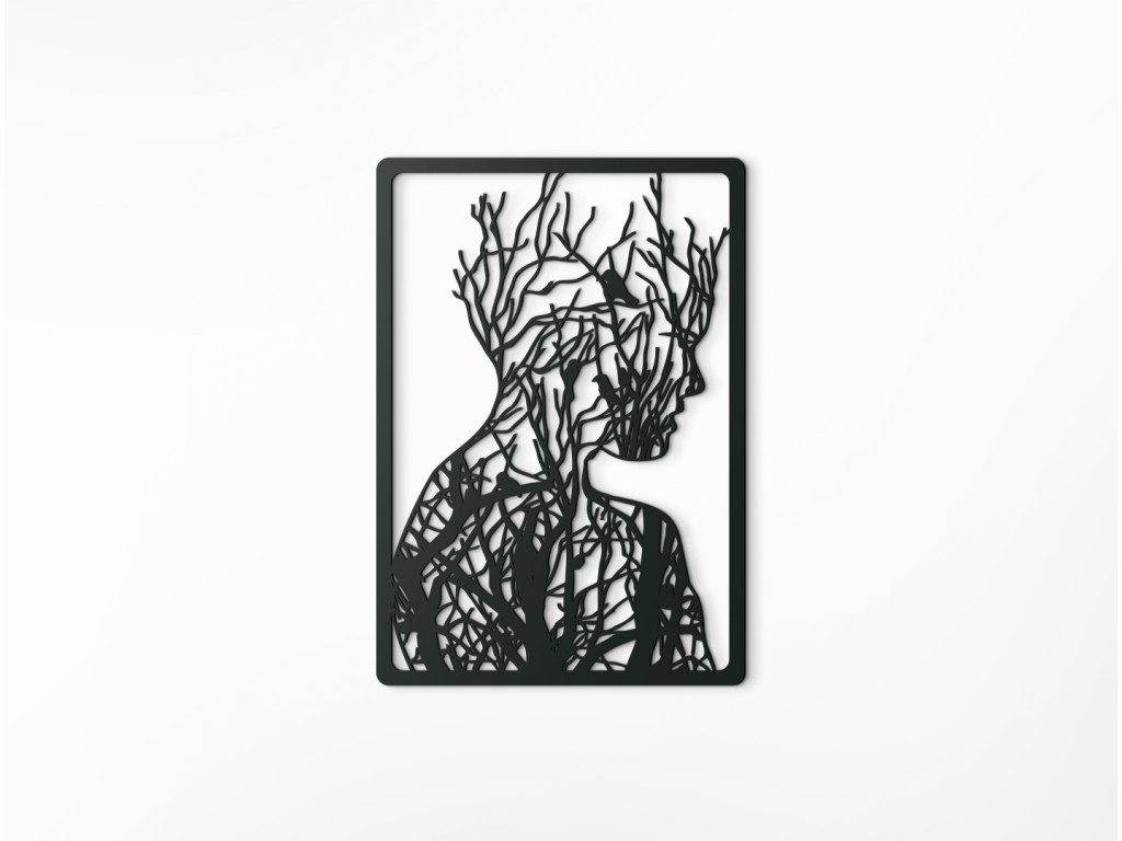 Modern, elegant und einzigartig. Wir sprechen vom Holzsticker FRAU, der in jedes Ambiente passen wird. Die auf dem Bild dargestellte Frau blickt in den Raum und an ihrem gesamten Körper breiten sich Äste aus. Die Dekoration ist für kleine und große Räume geeignet.