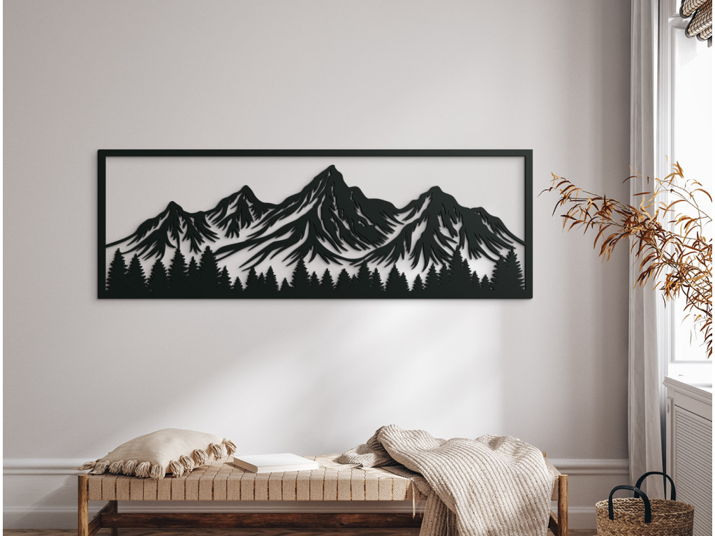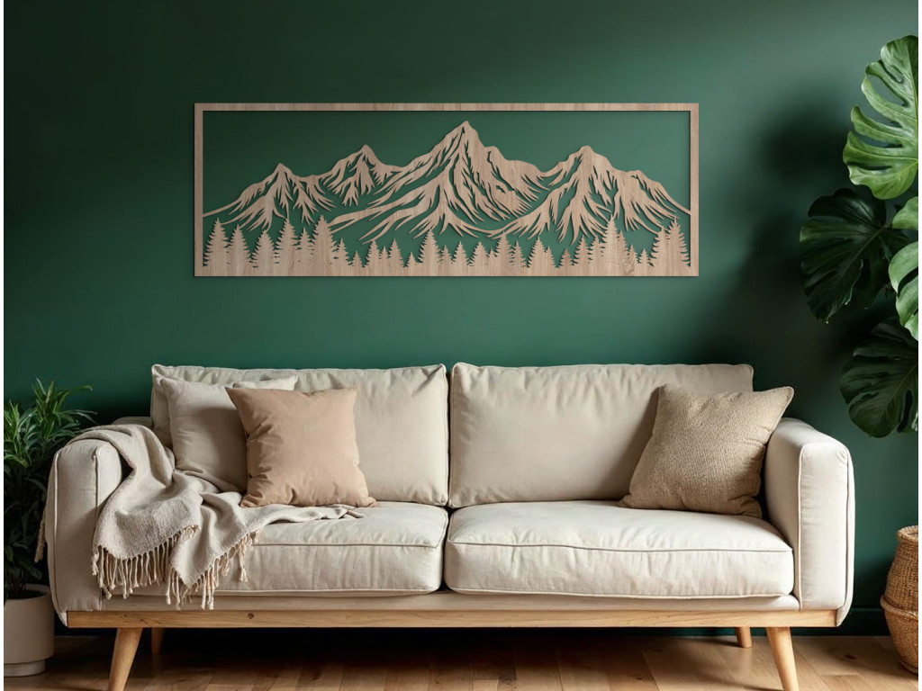 Das breitformatige Bild Berge hinter dem Wald bringt die majestätische Berglandschaft hinter dem Wald in Ihr Zuhause. Dank seines großen Formats stellt das Bild die Schönheit und Vielfalt der natürlichen Umgebung detailliert dar. Es ist ideal für große Wände, wo es einen kühnen und auffälligen künstlerischen Akzent setzt. Wählen Sie aus 3 Größen und 8 Dekoren.