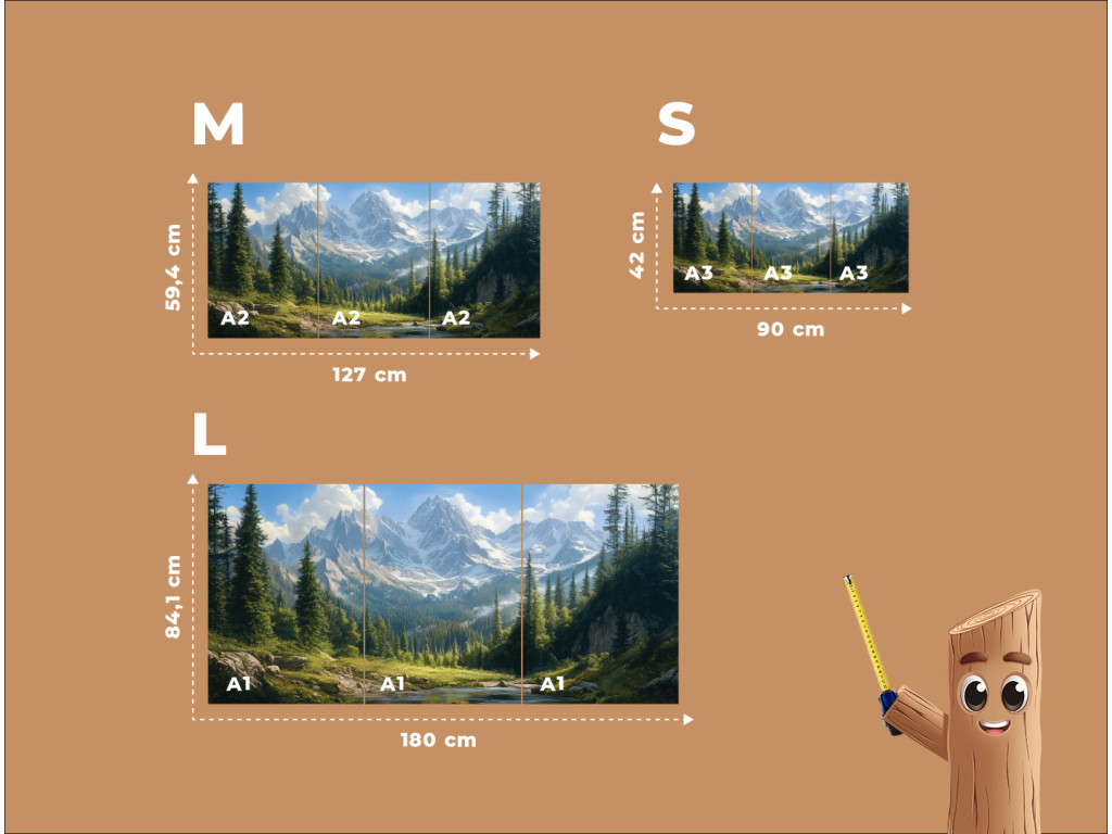Das Produkt wird als dreiteiliges Set im Format A1 / A2 / A3 (nach Wahl) geliefert.