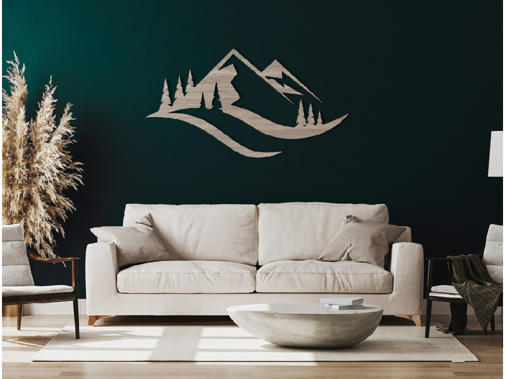 Das Holzbild BERGE UND WALD von drevko ruft in Ihnen ein ruhiges und angenehmes Gefühl hervor. Das Bild überzeugt durch interessante Details, wie beispielsweise die dreieckige Form oder die leicht eingefärbten Gipfel. Es besteht aus einer 3 mm HDF-Platte. Je nach dem eigenen Stil können Sie unter mehreren Dekors wählen.