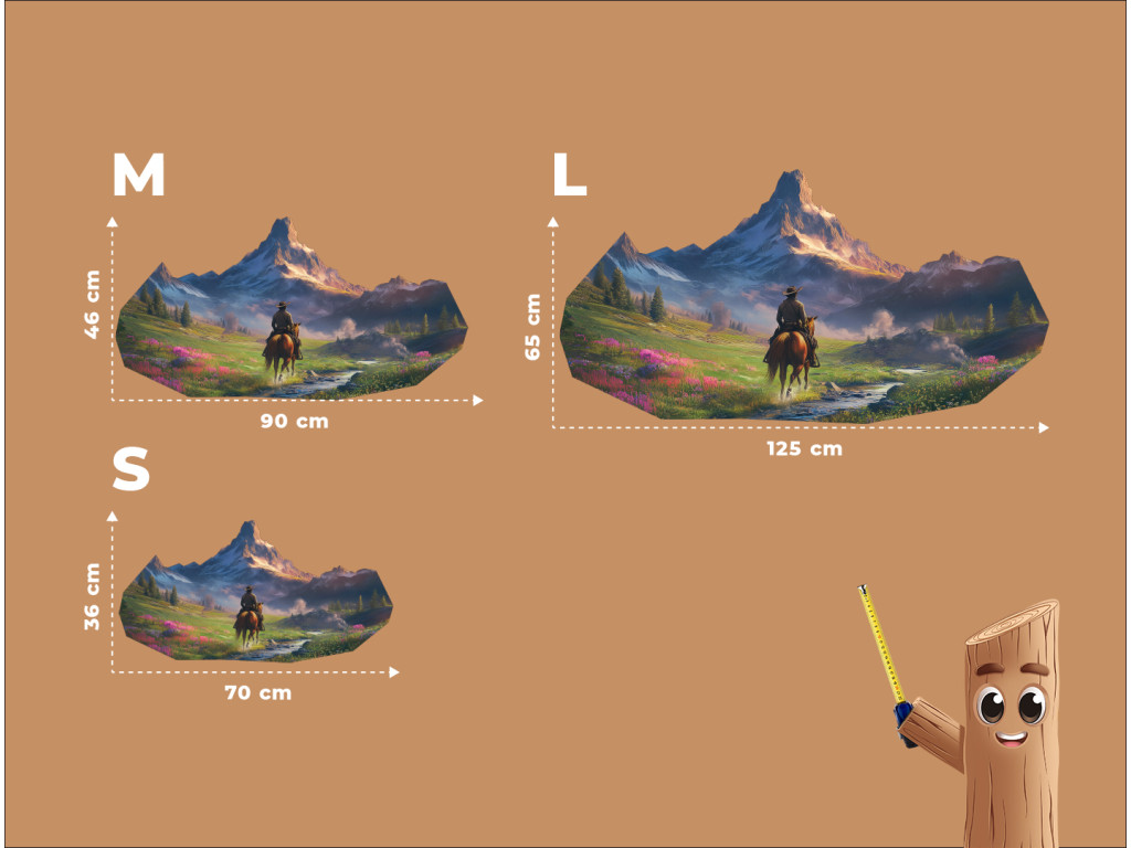 Unsere unregelmäßigen Bilder bringen Originalität in jeden Raum. Sie sind zu konkreten Formen zugeschnitten – ob es sich nun um Tiere, Gegenstände oder Landschaften handelt. Die Bilder sind lebendiger und außergewöhnlicher als klassische Bilder auf einer Leinwand.