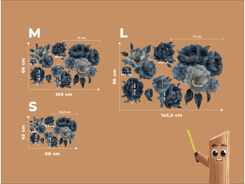 Frei gemalte Blumen in Weiß- und Blautönen, die an Pfingstrosen oder Rosen erinnern, bilden eine zarte und luftige Komposition voller Eleganz. Der expressive Stil mit Aquarellübergängen betont die Formen der Blumen und Blätter ohne unnötige Details, wodurch das Werk frisch und modern wirkt.