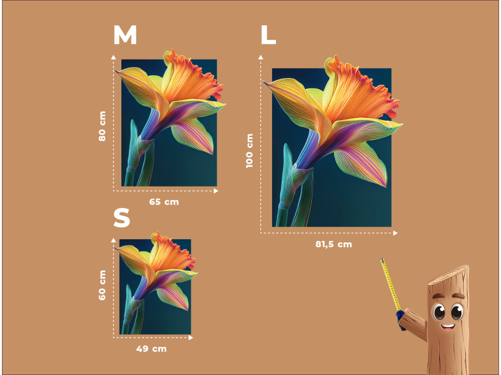 Die elegante Darstellung einer Narzisse in ungewöhnlichen Orange- und Violetttönen vor einem dunkelgrünen Hintergrund bietet einen frischen und zugleich raffinierten Blick auf dieses Symbol des Frühlings. Der Kontrast zwischen den satten Farben der Blüte und dem tiefgrünen Hintergrund betont die zarten Linien und die Struktur der Blütenblätter. Das Bild strahlt stille Eleganz und Einzigartigkeit aus – als Hommage an die Schönheit des Einfachen.