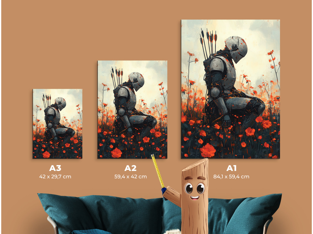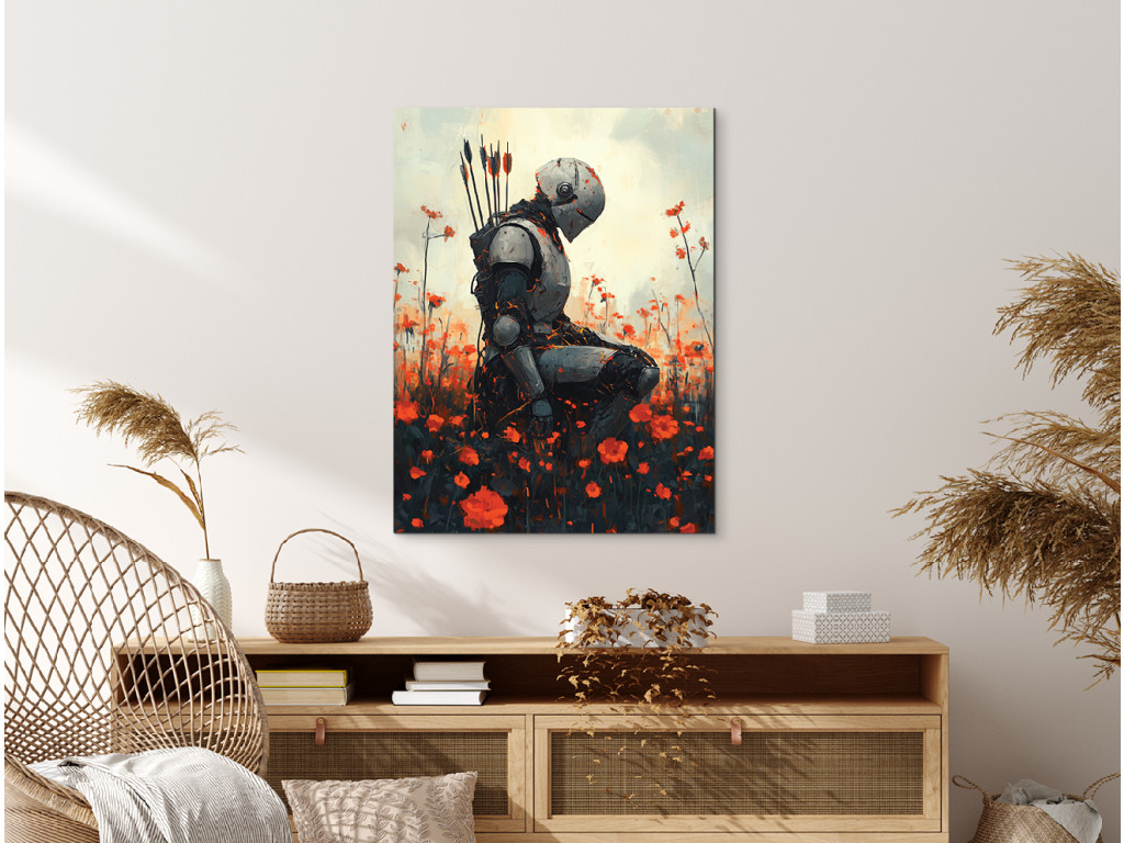 Der Ritter im Mohnfeld ist ein Bild mit ausgeprägter Symbolik und dramatischer Atmosphäre – die Figur des einsamen Ritters steht im Kontrast zur Zartheit der roten Mohnblumen, die sich über die Landschaft ausbreiten. Die Verbindung von Mut und Zerbrechlichkeit erzeugt einen starken visuellen und emotionalen Eindruck. Das Bild eignet sich ideal für Innenräume, die eine Geschichte erzählen und ein Gleichgewicht zwischen Kraft und Ruhe suchen.