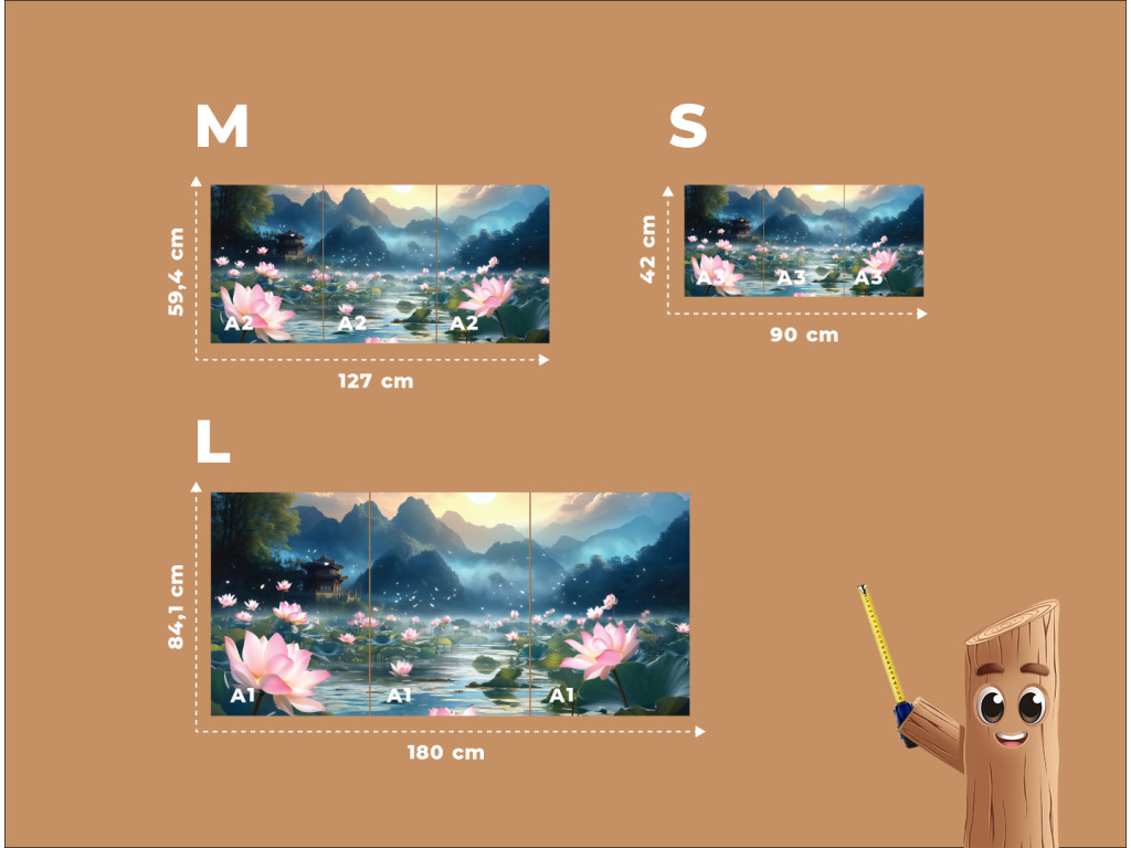 Das Produkt wird als dreiteiliges Set im Format A1 / A2 / A3 (nach Wahl) geliefert.