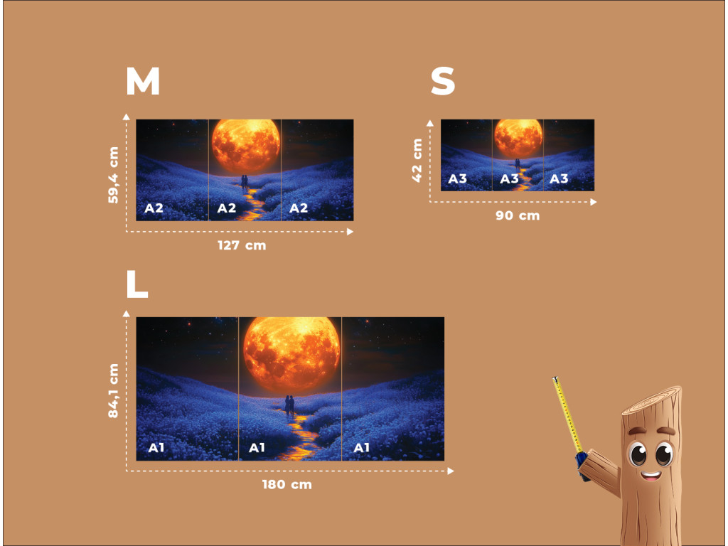 Das Produkt wird als dreiteiliges Set im Format A1 / A2 / A3 (nach Wahl) geliefert.