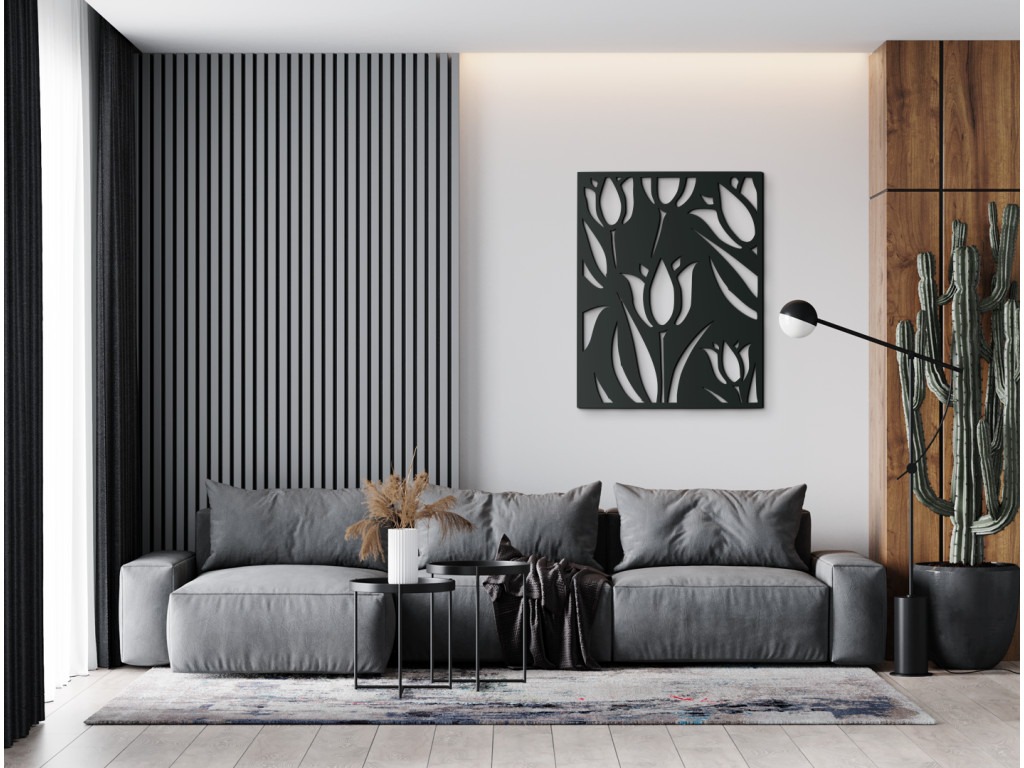 Das Produkt besteht aus einer 3 mm dicken HDF-Platte, die ausreichend stabil und widerstandsfähig ist. Sie können sicher sein, dass die Dekoration Ihre Wand viele Jahre lang verschönern wird. Im Gegensatz zu Wandstickern aus Plastikfolie erzeugt sie einen geschmackvollen und unaufdringlichen 3D-Effekt an der Wand. Sie können ein beliebiges Dekor wählen - der Preis ist bei allen gleich.