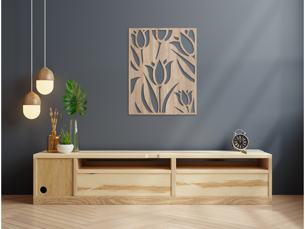Tulpen wirken an der Wand zart und elegant. Das Holzbild TULPEN passt gut über eine Kommode, eine Couch oder einen Sessel. Wenn Sie eine Tulpenliebhaberin sind, ist dieses Bild die richtige Dekoration für Sie. Verleihen Sie Ihrem Zuhause eine moderne und einzigartige Note.