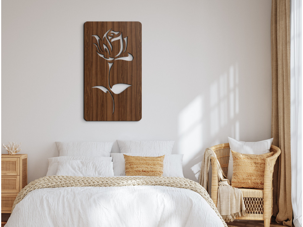 Das Holzbild für die Wand Rose ist ein Symbol für Zartheit, Liebe und Eleganz. Das geschnitzte Rosenmotiv auf einem schlichten Hintergrund wirkt modern und bewahrt gleichzeitig die klassische Schönheit des natürlichen Designs. Die präzise Verarbeitung hebt jedes Blatt hervor und erzeugt einen zarten 3D-Effekt, der auf den ersten Blick fasziniert. Sie können aus mehreren Farbvarianten wählen, damit sich das Bild perfekt in Ihren Einrichtungsstil einfügt.
