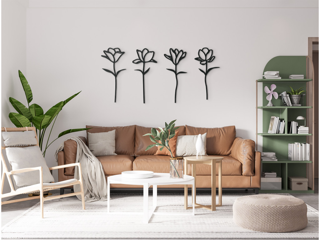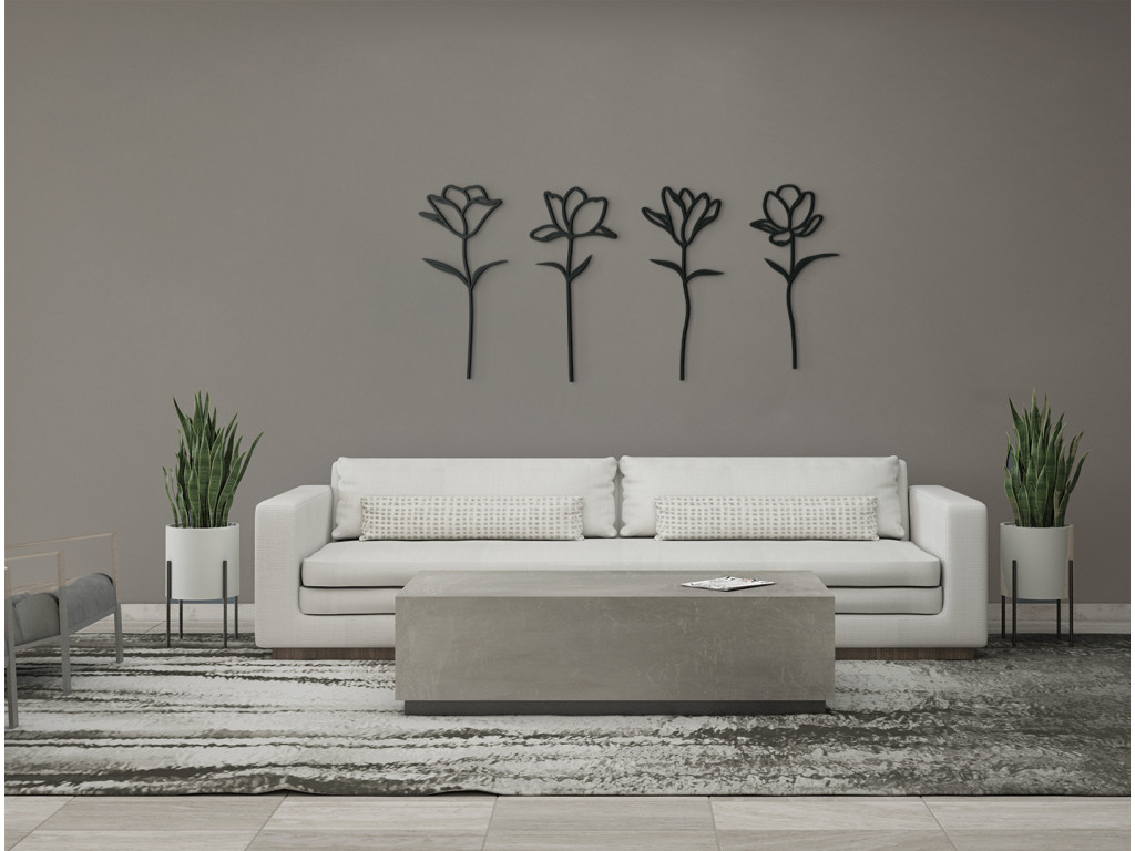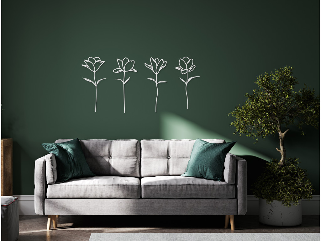 Verschönern Sie Ihre Wand mit einem Sticker mit Blumenmotiv. Blumen wirken beruhigend und erzeugen eine angenehme Atmosphäre. Sie können sie nebeneinander oder selbstständig ganz nach Ihren Wünschen anbringen. Die Sticker eignen sich für moderne Räume, Flure oder Büroräume.