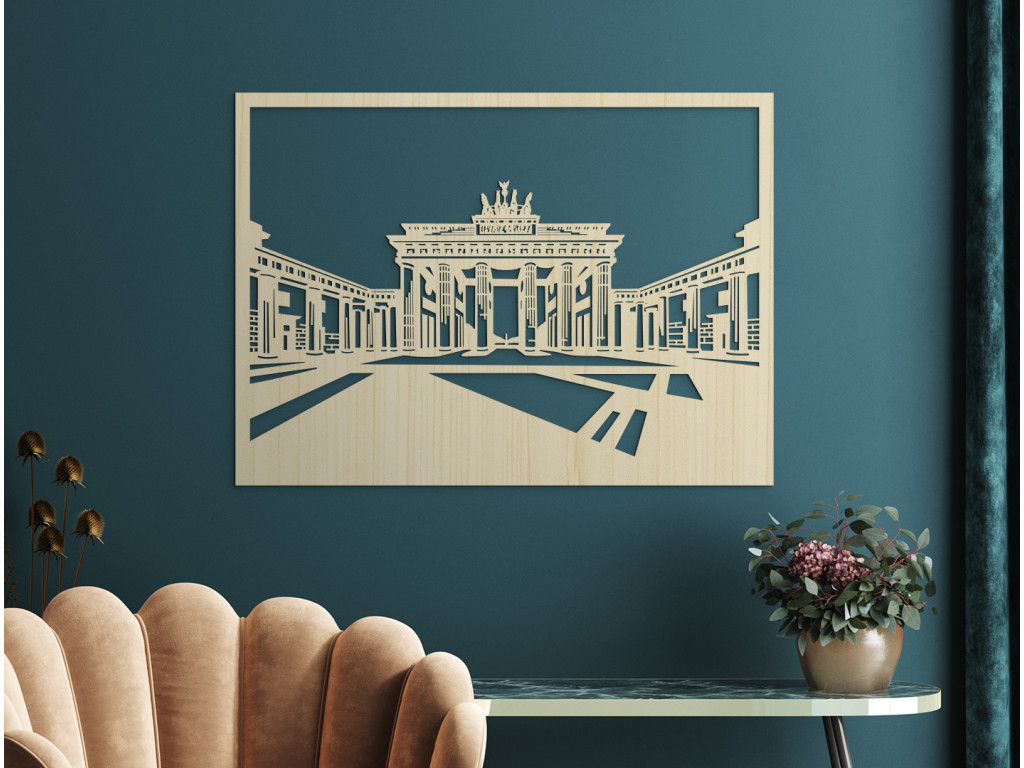 Holen Sie sich mit dieser eleganten Holzdekoration des Brandenburger Tors ein Stück des kultigen Berlins direkt nach Hause. Dieses Symbol der Einheit und der Geschichte wird Ihrer Einrichtung einen stilvollen und zeitlosen Look verleihen. Wählen Sie aus einer Reihe von natürlichen Holztönen und verschiedenen Größen, die perfekt in Ihren Raum passen. Lassen Sie sich jeden Tag von der Atmosphäre Berlins inspirieren!
