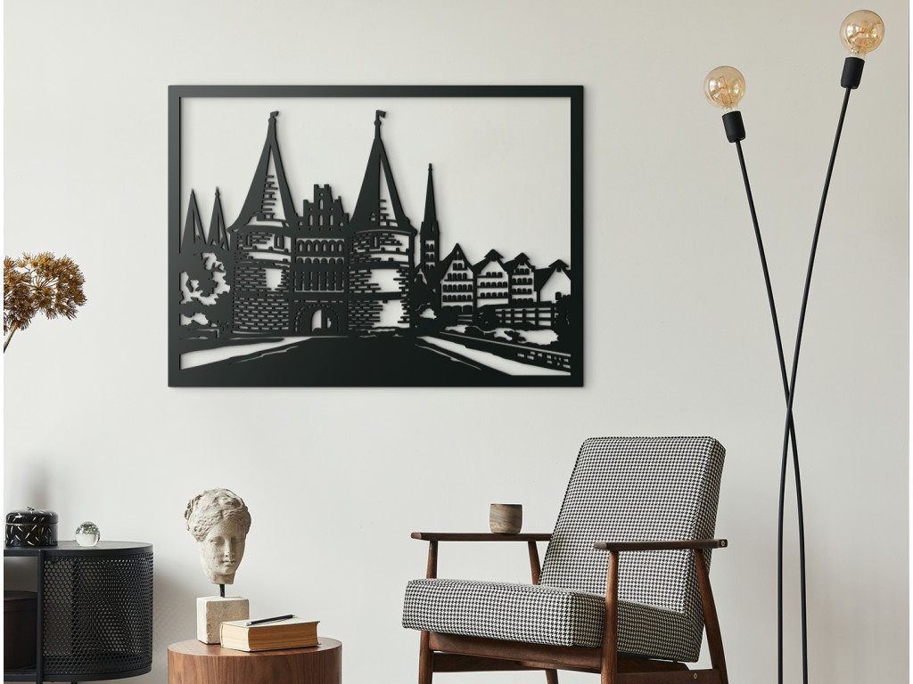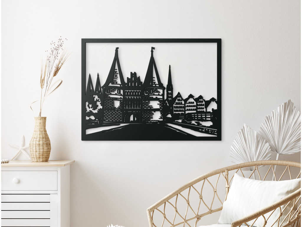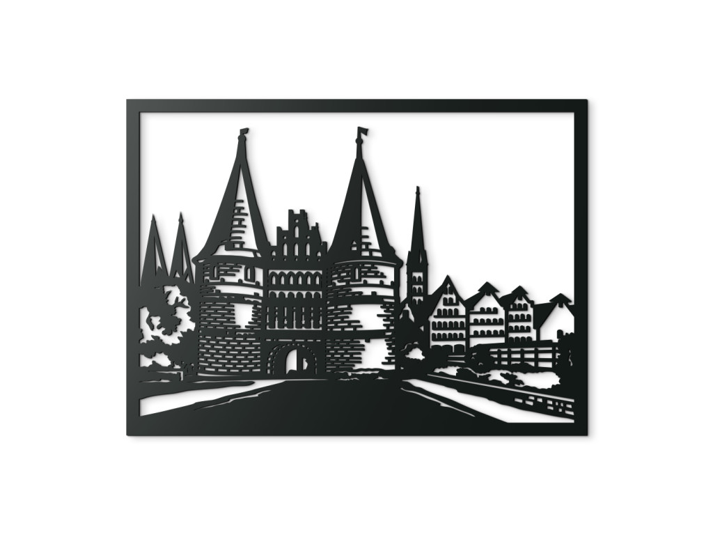 Holen Sie sich mit der Holzdekoration Holstentor in Lübeck eine mittelalterliche Atmosphäre in Ihr Zuhause. Dieses imposante gotische Tor, einst Teil der Stadtbefestigung, ist heute ein Symbol für Lübeck und seine bewegte Geschichte. Wählen Sie aus mehreren natürlichen Holztönen und verschiedenen Größen, die perfekt in Ihre Einrichtung passen. Eine stilvolle und historische Ergänzung, die einen Hauch von deutschem Erbe in Ihren Raum bringt!