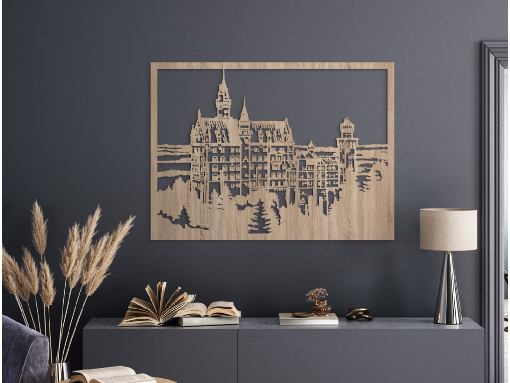 Holen Sie sich mit der Holzdekoration Schloss Neuschwanstein eine märchenhafte Atmosphäre nach Hause. Dieses ikonische Symbol der deutschen Romantik und Inspiration für das Disney-Schloss wird jeden Liebhaber von Geschichte und Märchen verzaubern. Wählen Sie aus mehreren natürlichen Holztönen und verschiedenen Größen, die perfekt in Ihren Raum passen. Ein Stück bayerischer Schönheit, das Ihr Zuhause in einen Ort voller Eleganz und Fantasie verwandeln wird!