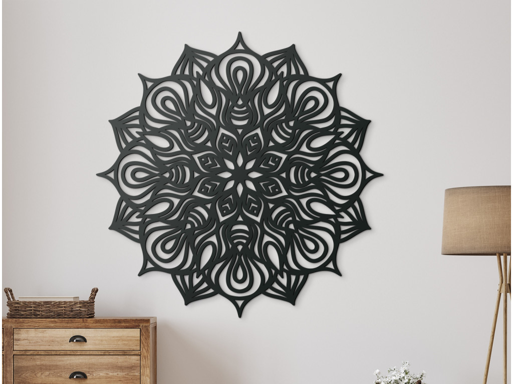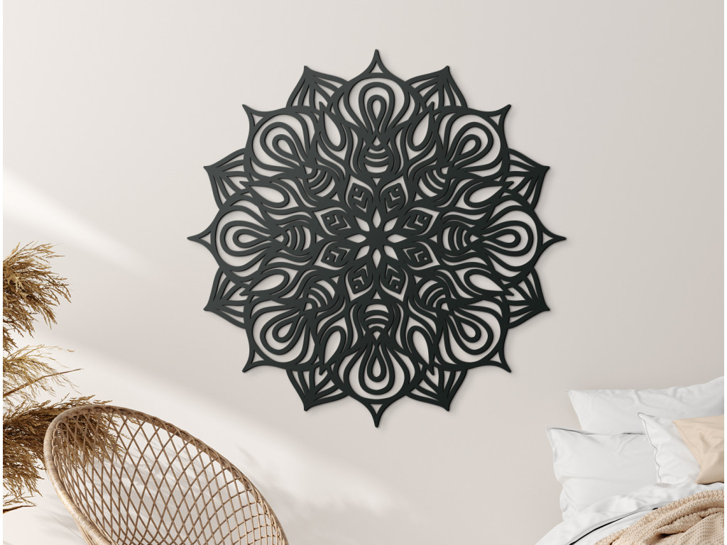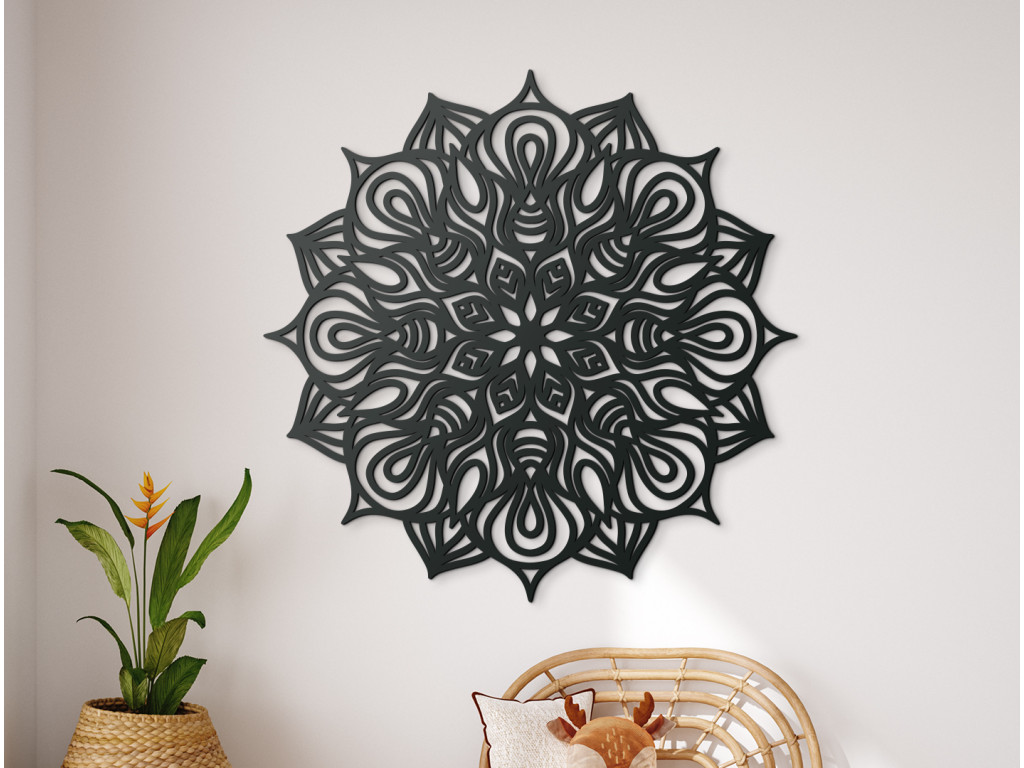 Das Holzmandala HYPNOSE ist ein faszinierendes Kunstwerk, dass Ihrem Zuhause eine mystische Atmosphäre und visuelle Tiefe verleiht.