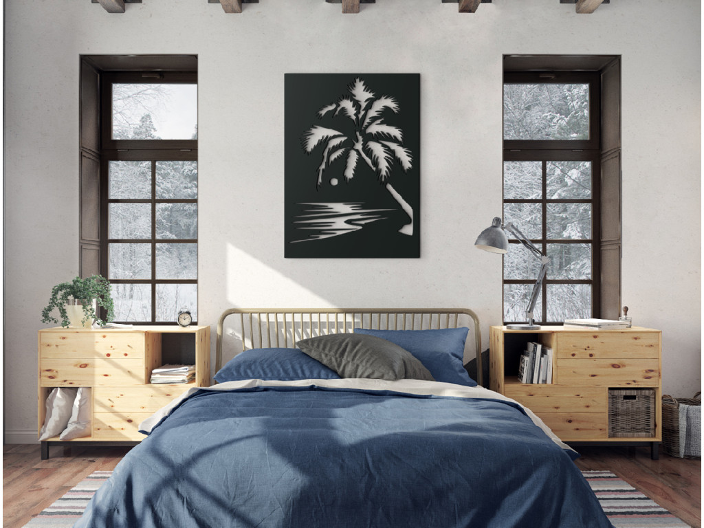 Achtung an alle, die Exotik lieben. Wir haben für Sie ein Holzbild mit einem herrlichen Sonnenuntergang bei einer Palme und der abendlichen Flut. Die so dargestellte Flut bringt jedem Raum eine friedliche und ungestörte Atmosphäre. Bei jedem Blick auf dieses Bild werden Sie von Neuem begeistert sein.
