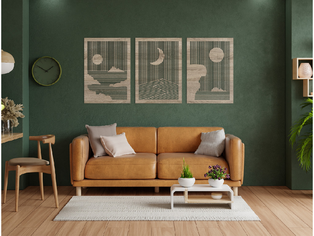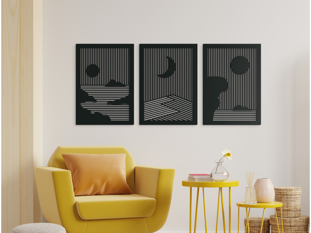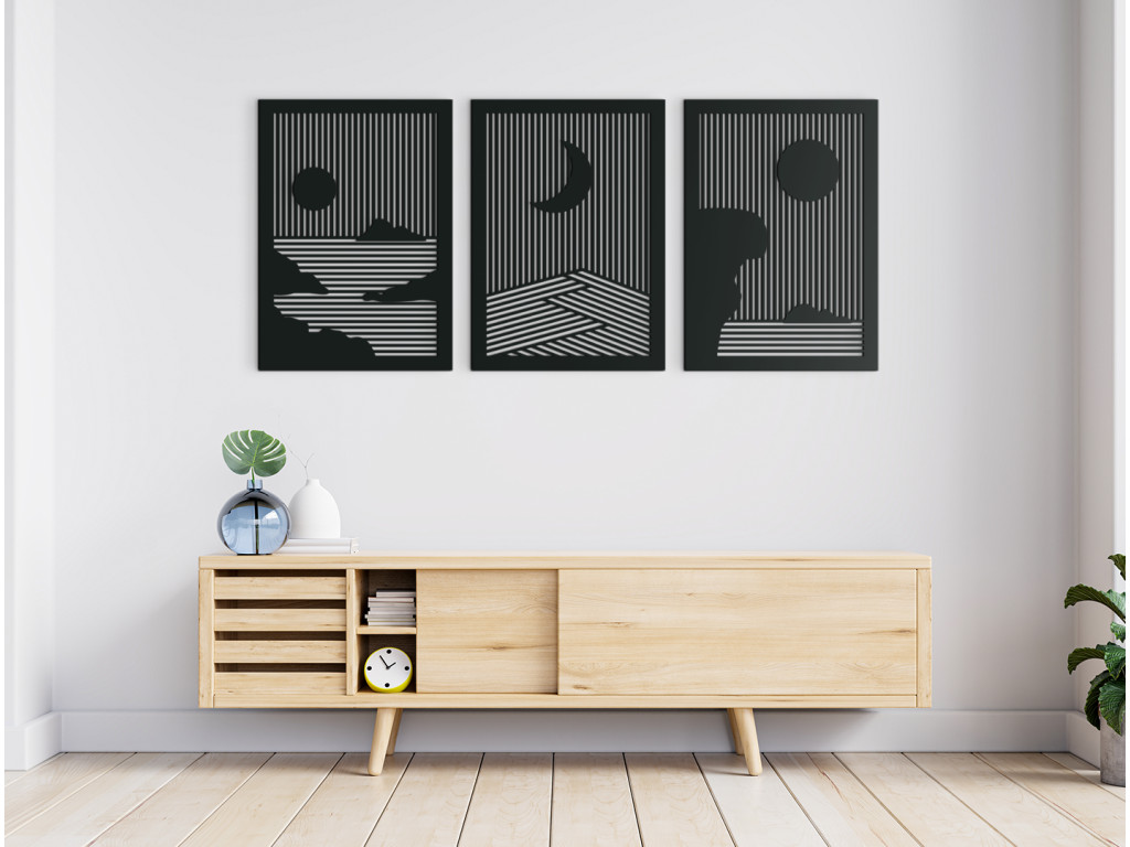 Soeben haben Sie eine Dekoration gefunden, die nicht nur einfach eine leere Stelle füllt. Dieses Bild bringt ein Stück moderner Kunst in Ihr Zuhause. Wenn Sie minimalistisches Design, natürliche Materialien und originelle Verarbeitung bevorzugen, sind Sie bei uns genau richtig. Jedes Detail wurde genau durchdacht, um Ästhetik mit Qualität zu verbinden – für eine Dekoration, in die Sie sich auf den ersten Blick verlieben werden.