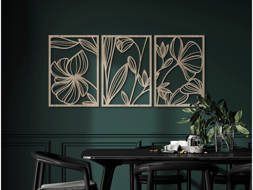 Das Produkt besteht aus einer 3 mm dicken HDF-Platte, die ausreichend stabil und widerstandsfähig ist. Sie können sicher sein, dass die Dekoration Ihre Wand viele Jahre lang verschönern wird. Im Gegensatz zu Wandstickern aus Plastikfolie erzeugt sie einen geschmackvollen und unaufdringlichen 3D-Effekt an der Wand. Sie können ein beliebiges Dekor wählen - der Preis ist bei allen gleich.