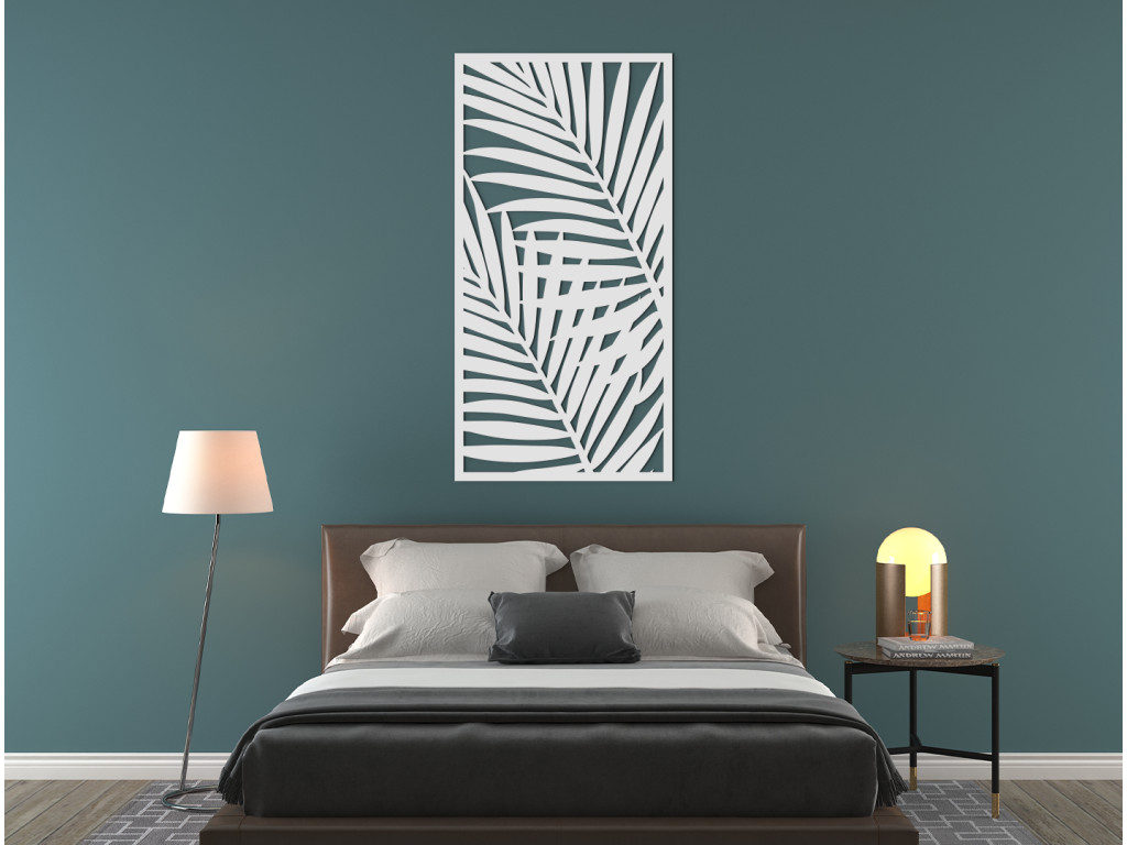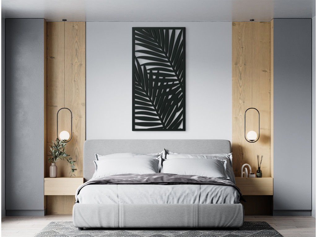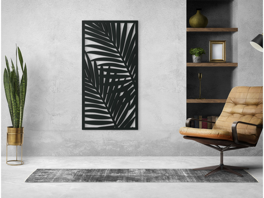 Palmenblätter sorgen für ein angenehmes und exotisches Design. Dank des einfachen Looks können sie einfach an die Möbel und weitere Dekorationen angepasst werden. Das Bild eignet sich für moderne Einrichtungen, Dielen und Büros.