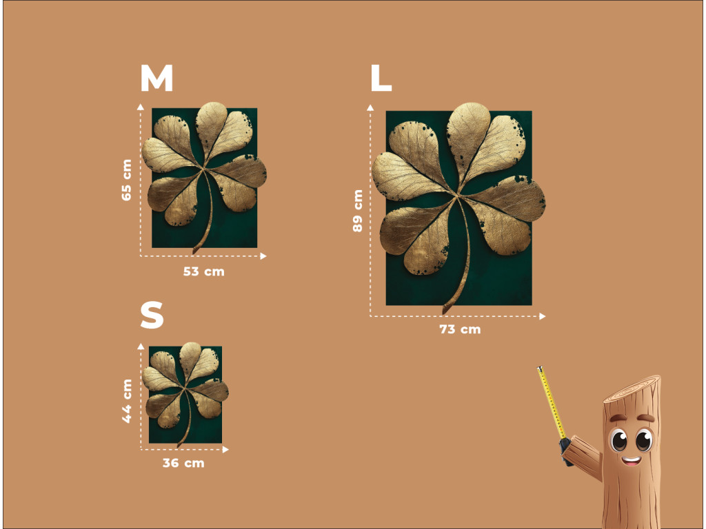 Das Bild Vierblättriges Kleeblatt zeigt das goldene Glückssymbol vor einem tiefschwarzen Hintergrund, der seine einzigartige, unregelmäßige Form hervorhebt. Die elegante Kombination aus Kontrast und Asymmetrie wirkt modern und verbirgt gleichzeitig einen Hauch von Mystik.