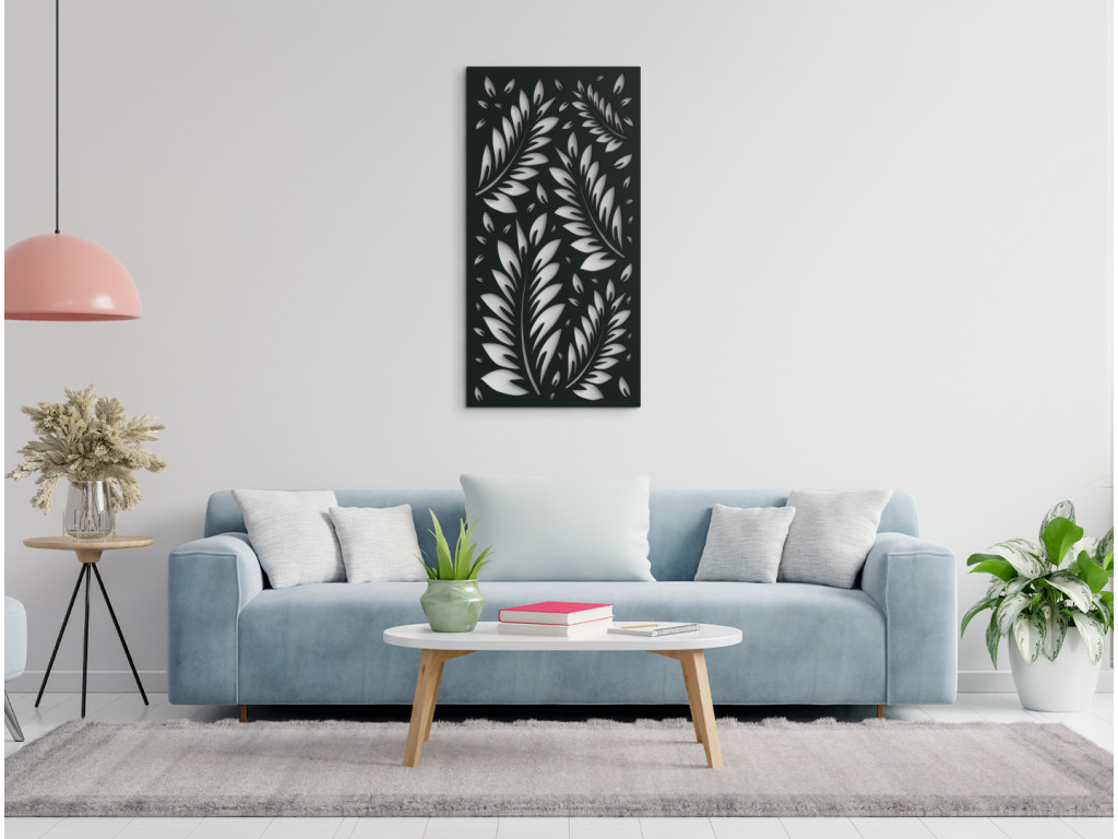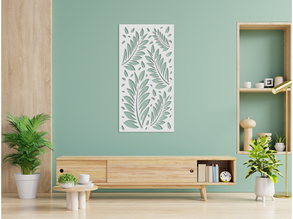 Das ausgeschnittene Bild BLÄTTER IM WIND bietet zarte Linien und präzise ausgearbeitete Details. Dank des einfachen Designs können Sie es ganz leicht an die Möbel und andere Dekorationen anpassen. Das Bild eignet sich für moderne Räume, Flure und Büros.