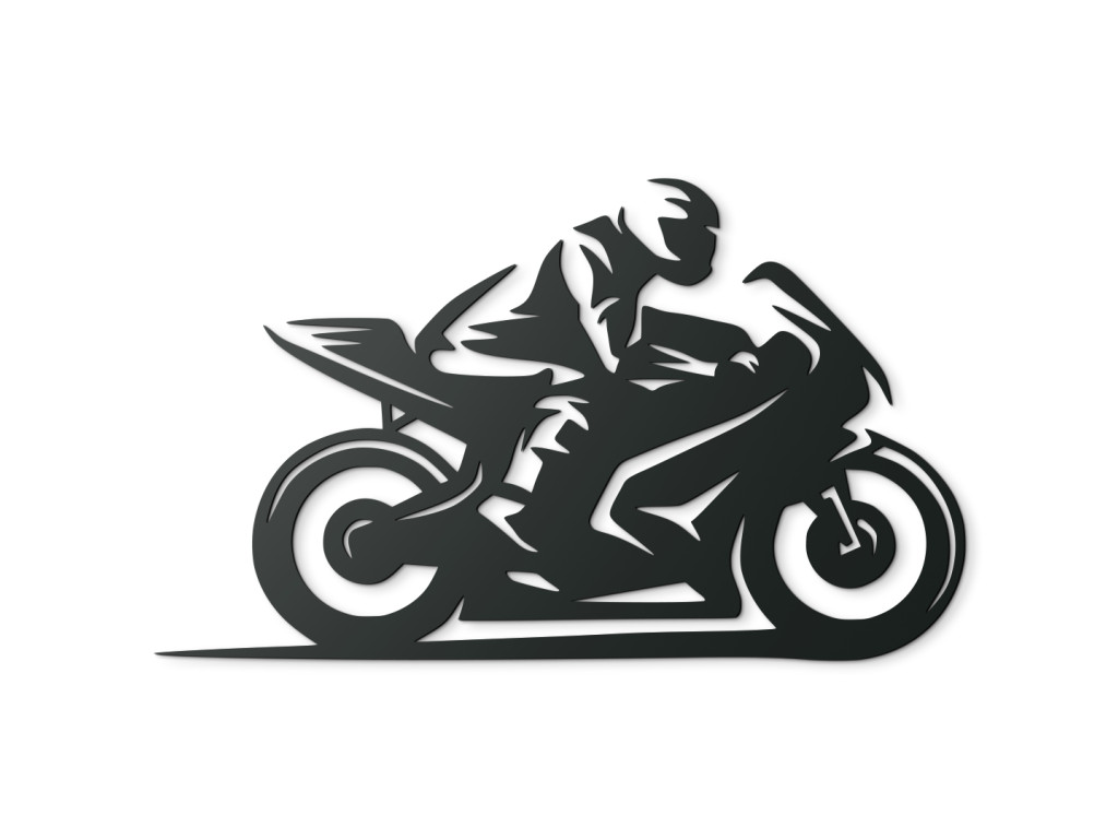 Der Biker auf der Straße – eine Sinfonie der Freiheit und des Abenteuers. Dieses Bild fängt die Sehnsucht nach unendlichen Straßen ein, die sich vor dem Horizont erstrecken.