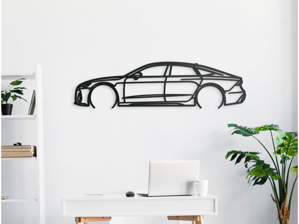 Ein Bild aus einer hochwertigen 3mm HDF-Platte, das die ikonische Silhouette und Details des Audi RS7 zeigt.