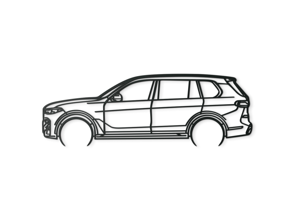 Das detailliert ausgefertigte Bild zeigt das majestätische Design eines BMW X7. Dabei handelt es sich um ein Modell, dass in den letzten Jahren zum Symbol für luxuriöse SUVs geworden ist.