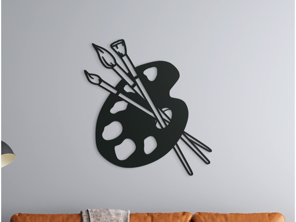 Die Malerpalette und Pinsel zählen zur Grundausstattung jedes Künstlers. Als Dekoration passen sie deshalb in Ateliers, Studentenräume, aber auch ins Wohn- oder Kinderzimmer.