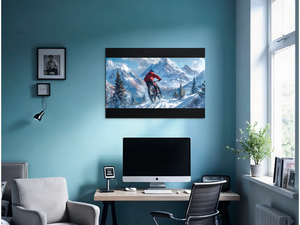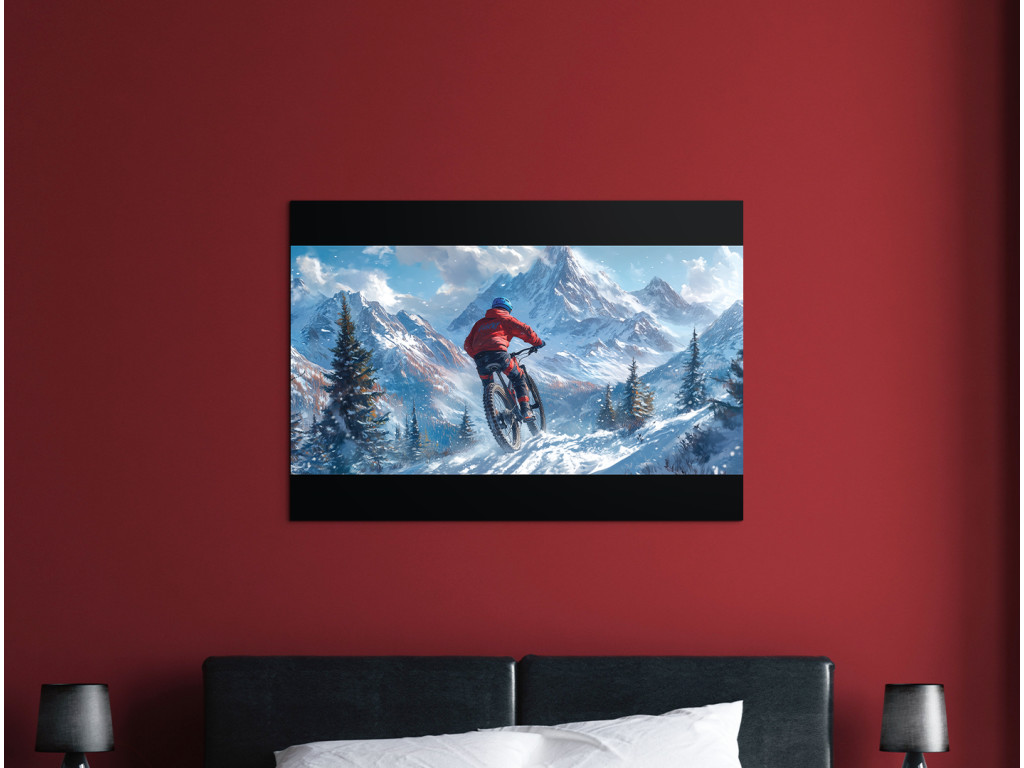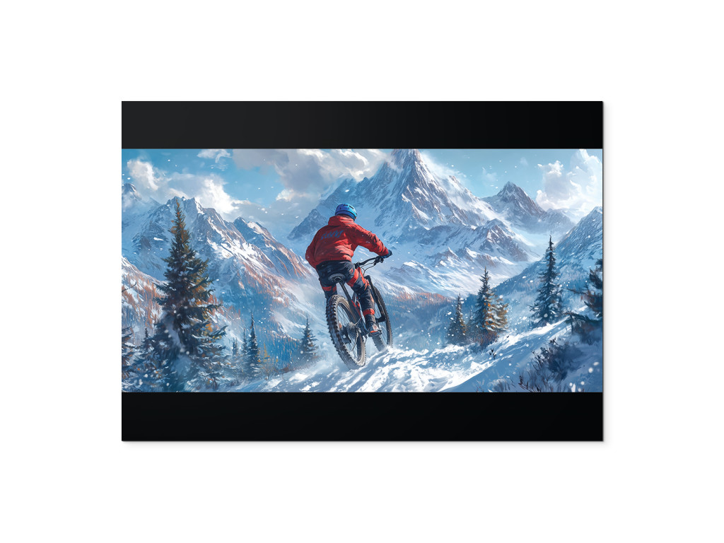 Das Bild zeigt eine dynamische Szene aus dem Mountainbiking, in der ein Fahrer auf einem speziellen Mountainbike unebenes, natürliches Gelände bewältigt. Die Szene vermittelt ein Gefühl von Freiheit, körperlicher Herausforderung und Verbundenheit mit der Natur.