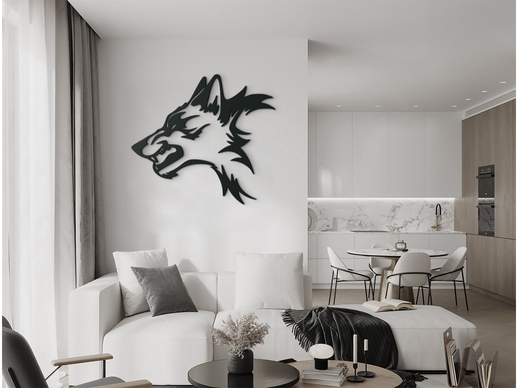 Verleihen Sie Ihrer Einrichtung einen originellen Look. Der effektvolle Wandsticker mit dem wilden Wolf, der aussieht, als wollte er sich jeden Moment auf Sie stürzen, wirkt dynamisch und lebendig.