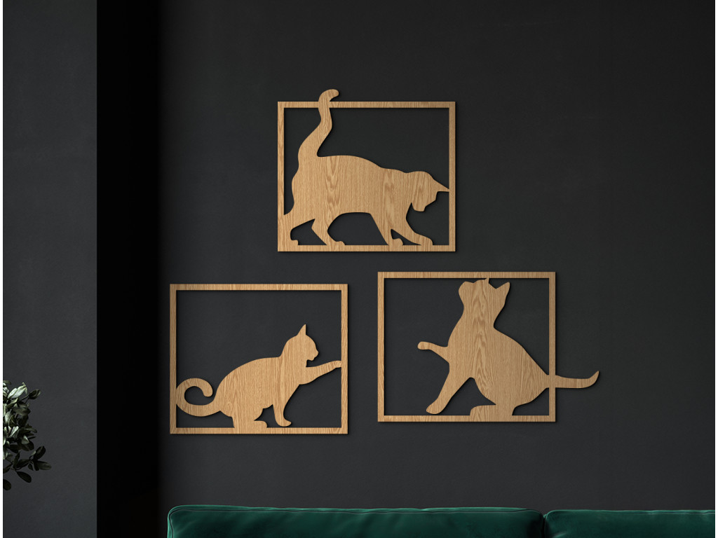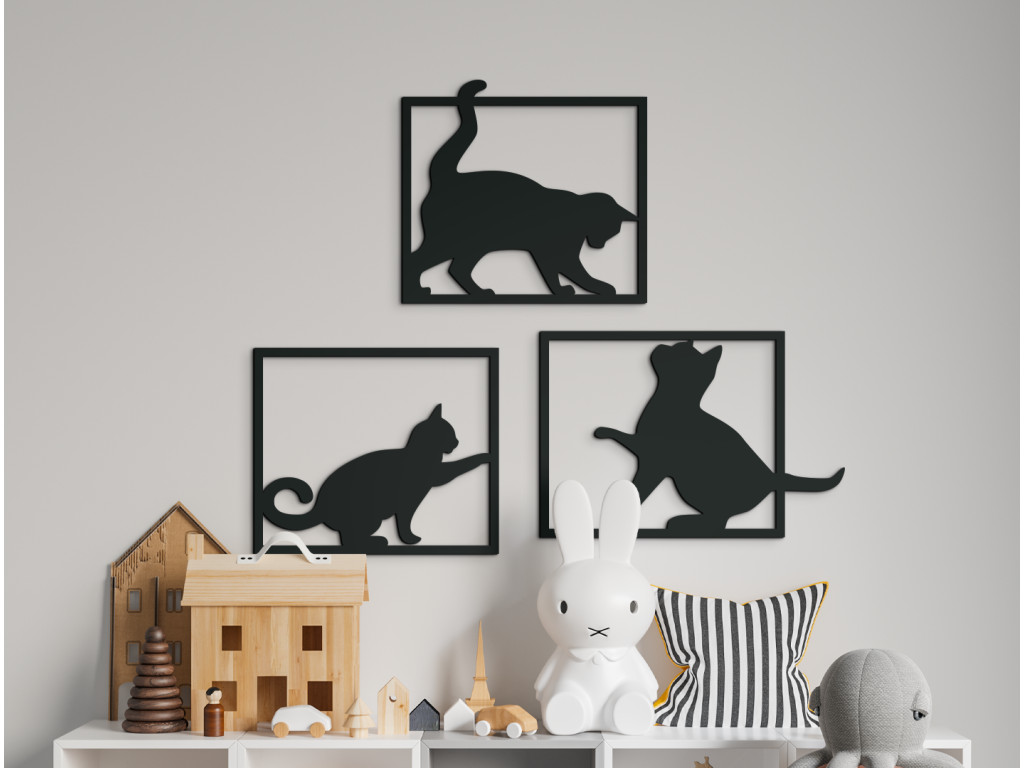 Das Bild Drei Katzen ist eine dreiteilige Dekoration, die Verspieltheit, Eleganz und schlichtes Design vereint. Jede Katze ist in einer anderen Pose dargestellt, was eine unterhaltsame und zugleich ästhetische Komposition ergibt. Die fein gearbeiteten Linien wirken modern und verleihen dem Raum Charme und Gemütlichkeit. Sie können aus mehreren Farbvarianten wählen, die sich perfekt in Ihre Einrichtung einfügen.