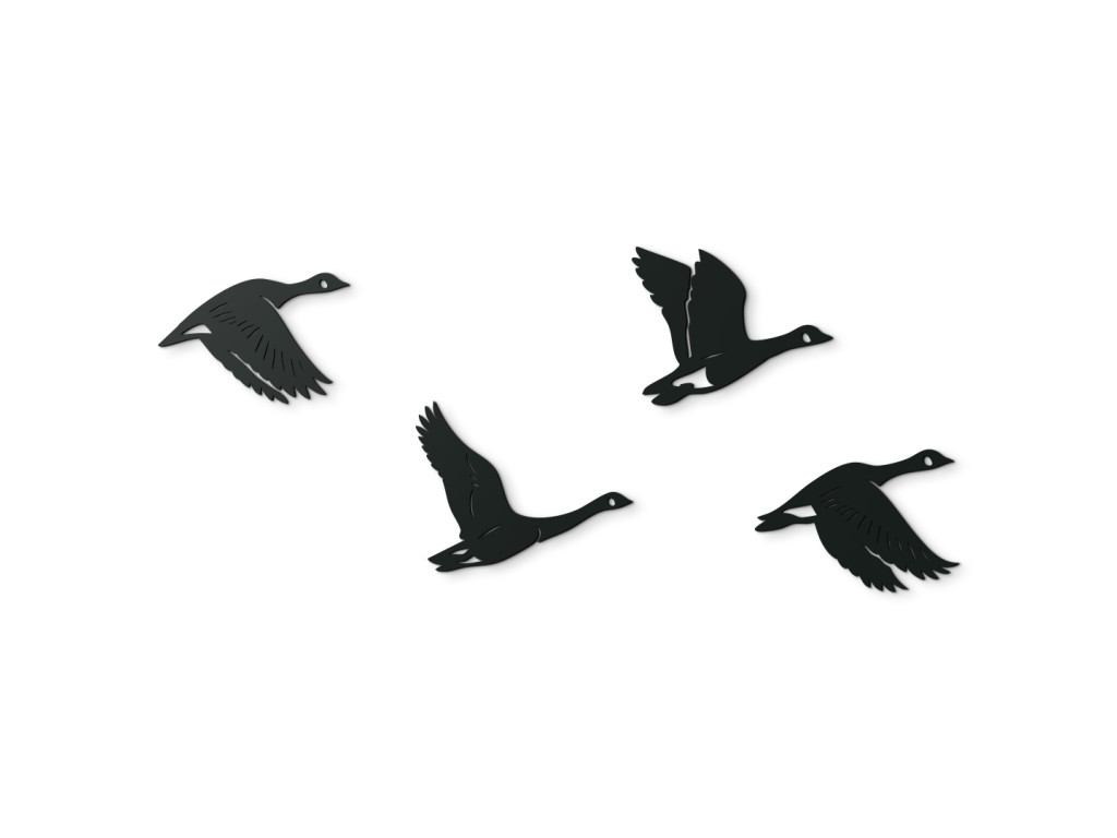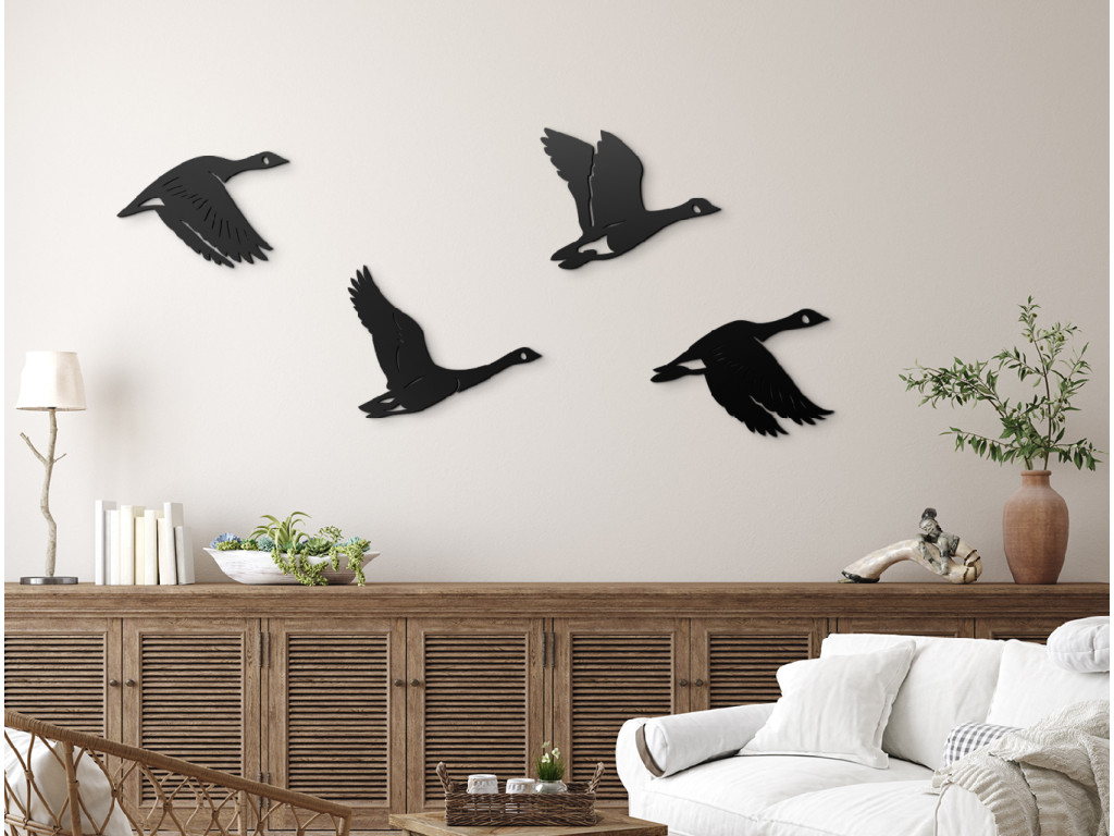Die Holzdekoration Wildgänse fängt den Moment des Fluges und der natürlichen Freiheit ein, wenn vier Vögel in verschiedenen Posen durch den Himmel gleiten. Die gearbeiteten Linien wirken leicht und elegant, wodurch das Bild dem Raum ein Gefühl von Bewegung und Luftigkeit verleiht. Diese Dekoration belebt sowohl die Wand in einem modernen Ambiente als auch in einer gemütlichen Hütte. Sie können aus mehreren Farbvarianten wählen, die die Atmosphäre Ihres Zuhauses unterstreichen.