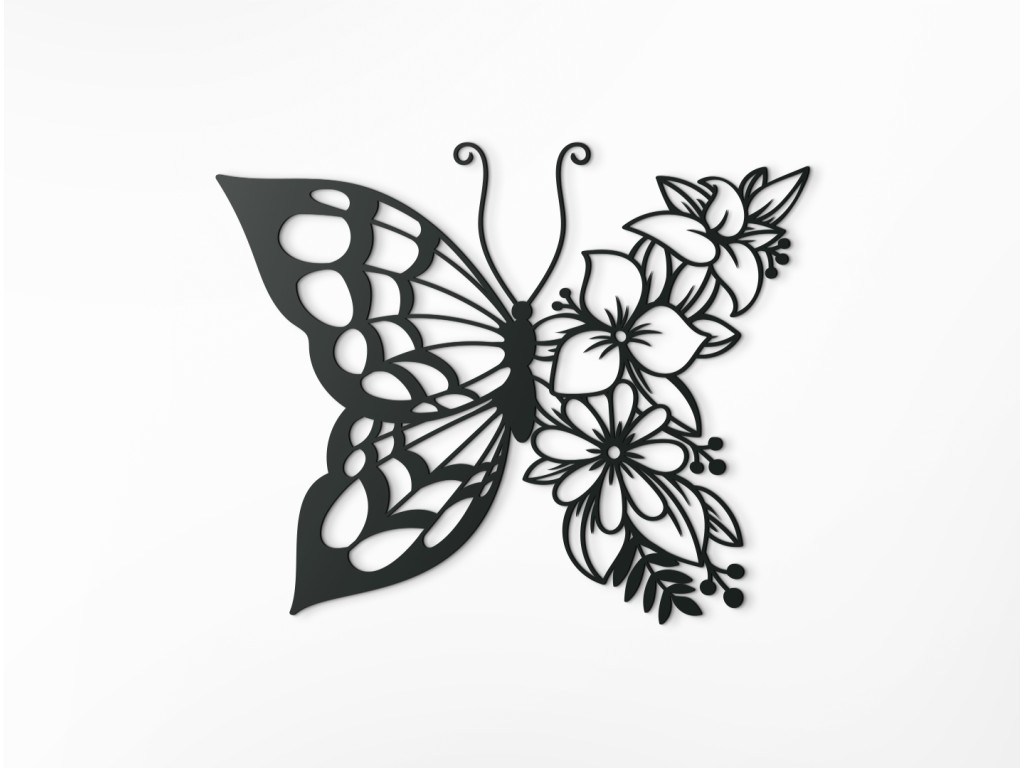 Die romantische Darstellung eines Schmetterlings in Gestalt eines Wandstickers aus Holz verschönert leere Wände und macht Räume gemütlicher. Der Blumenschmetterling ist eine Dekoration für jeden, der Blumen und Schmetterlinge mag, aber auch für verträumte Naturen und Menschen mit einem Sinn für abstrakte Kunst.