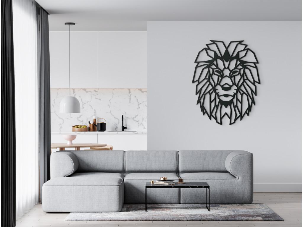 Der Holzsticker POLYGONALER LÖWE bringt originelles Design in jeden Raum. Der König der Tiere wirkt modern im Wohn-, Schlaf- oder Kinderzimmer, aber auch im Flur.