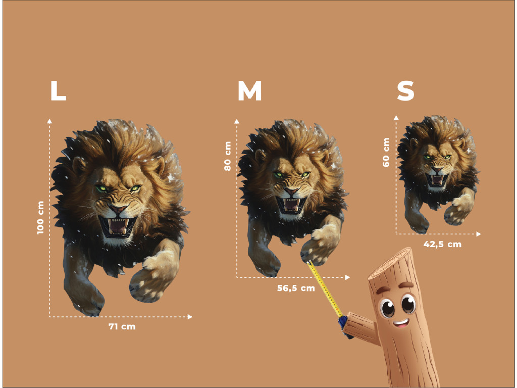 Dieser originelle Wandaufkleber zeigt einen brüllenden Löwen mit zerzaustem Fell und durchdringenden grünen Augen. Der dreidimensionale Effekt verleiht dem Bild Dynamik und Kraft, während das geöffnete Maul mit den Zähnen die Wildheit und Entschlossenheit unterstreicht. Ein markantes Element für Ihr Interieur mit der Energie der Wildnis.