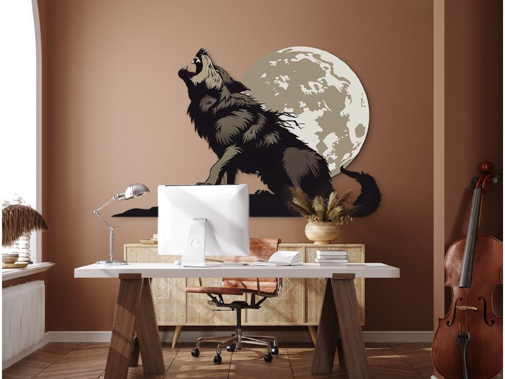 Wandbild Wolf heult den Mond an