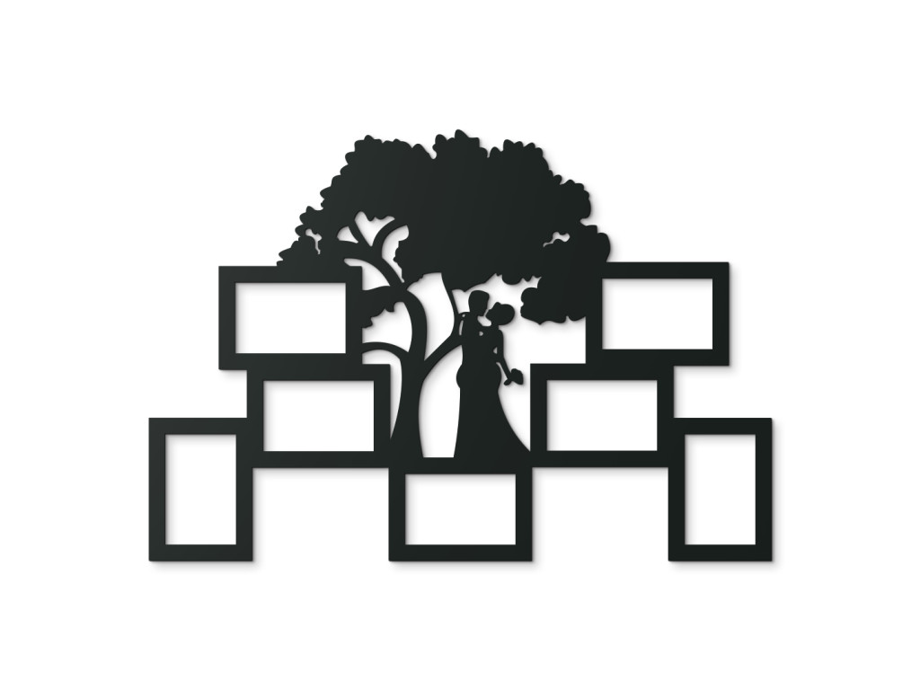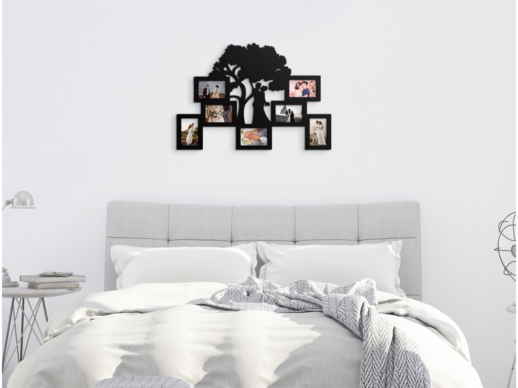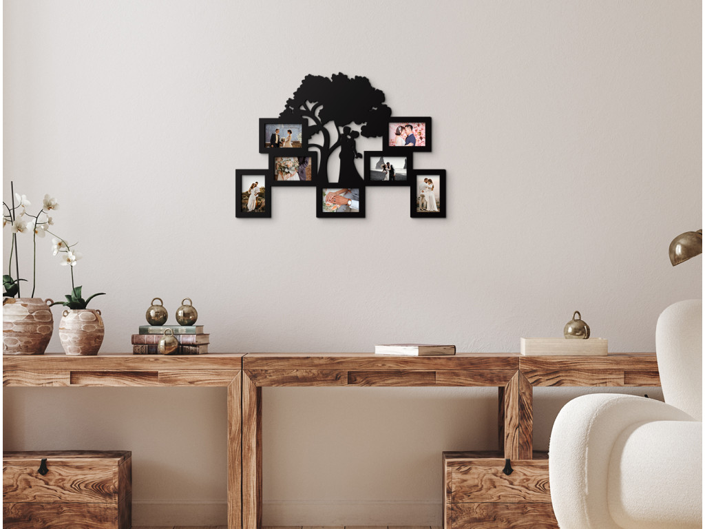 Hochzeitsfotos haben für verliebte Paare eine ganz besondere Bedeutung, warum sollten sie also in einem Album versteckt werden? Erinnern Sie sich jeden Tag mit einem Fotorahmen an Ihr Versprechen oder die schönsten Momente Ihrer gemeinsamen Beziehung. Das Design besteht aus einem Baum des Lebens mit einem sich umarmenden Paar unter seiner breiten Krone. Sie können hier bis zu 7 Fotos im Quer- oder Hochformat ausstellen. Das Produkt besteht ausschließlich aus dem Rahmen, es enthält kein Glas oder andere Materialien.