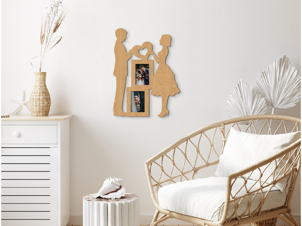 Sie können den Hochzeitsfotorahmen zunächst zur Feier Ihres gemeinsamen Tages verwenden und ihn später an eine Wand in Ihrer gemeinsamen Wohnung hängen. Ein Fotorahmen für 2 Fotos ist auch ein originelles Geschenk für Ihren Ehepartner zu einem Urlaub oder Jahrestag. Dank der breiten Farbpalette können Sie außerdem ein beliebiges Dekor wählen und ihn perfekt auf die Einrichtung abstimmen.