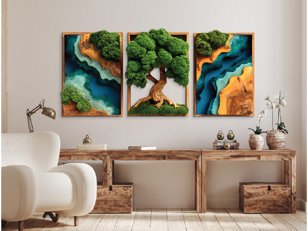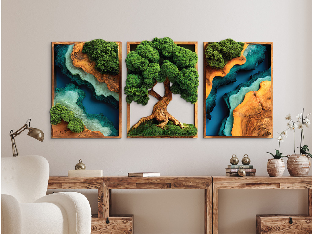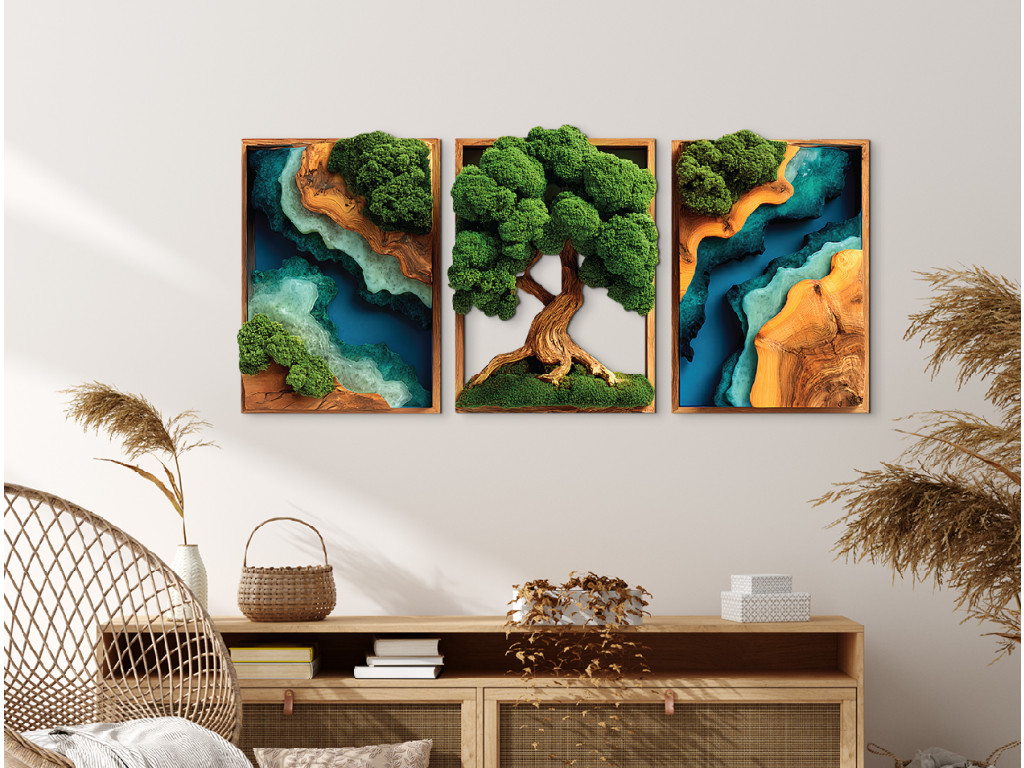 Dreiteiliger Moos-Lebensbaum Kraft (UV-Druck)