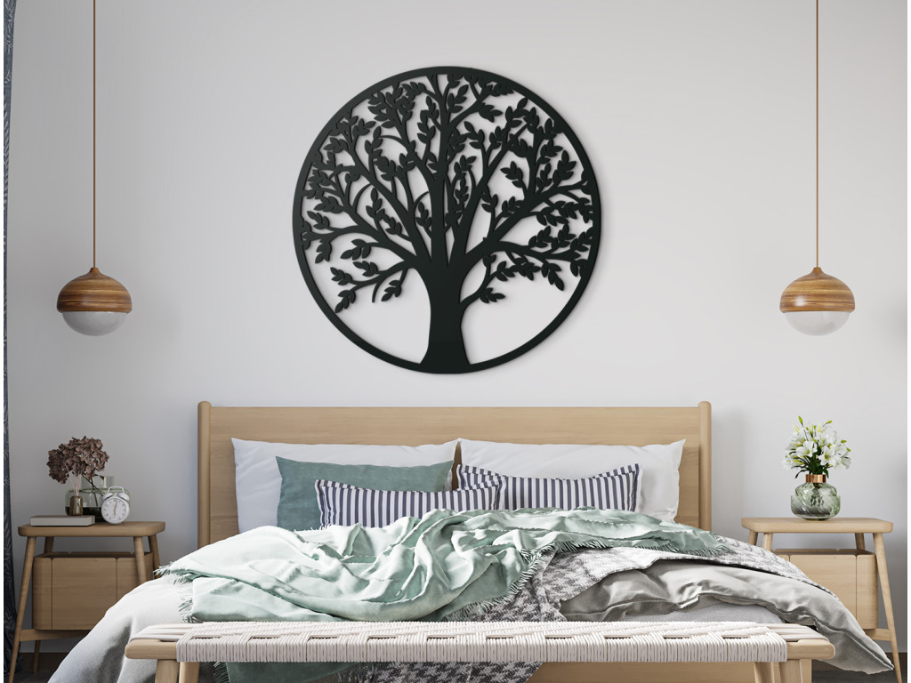 Sie suchen nach einem neuen Bild für Ihr Zimmer? Der romantische Wandsticker aus Holz ist eine Dekoration für moderne Haushalte. Der Baum ist in einem kreisförmigen Rahmen eingefasst, der das Bild originell und elegant macht. Es passt in jeden Raum.