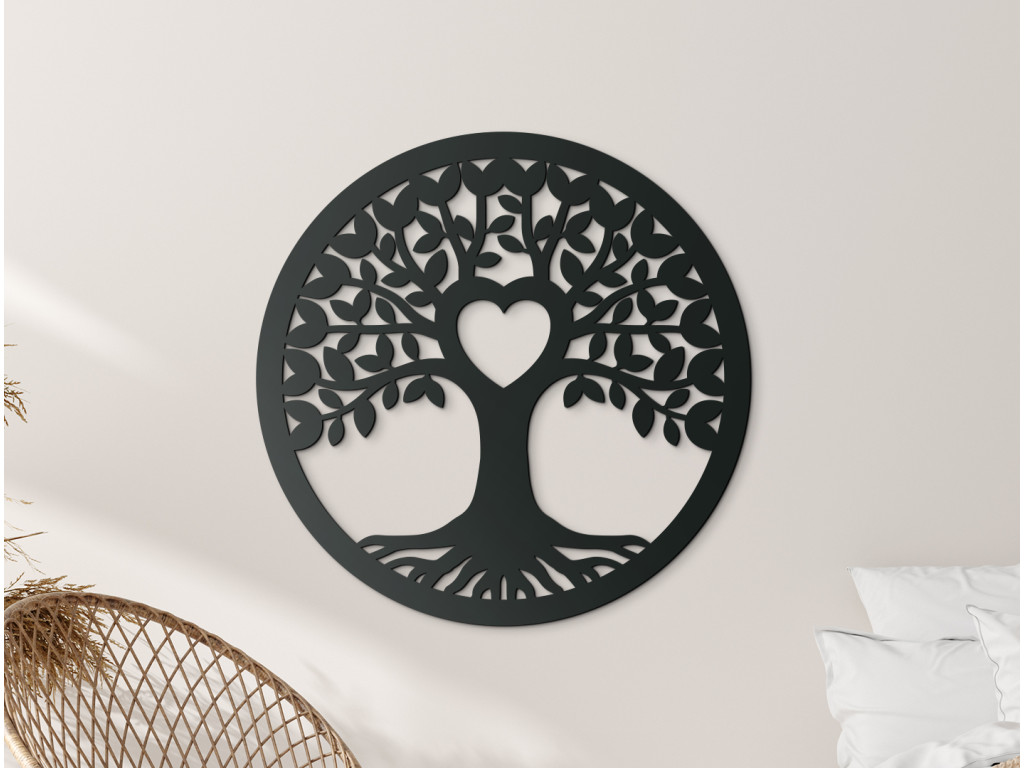 Der Lebensbaum Liebe aus Holz - eines der beliebtesten Motive, das jeden anspricht. Der runde Baum und das geschnitzte Herz in der Mitte des Baumes stehen für blühende und unsterbliche Liebe und Frieden.