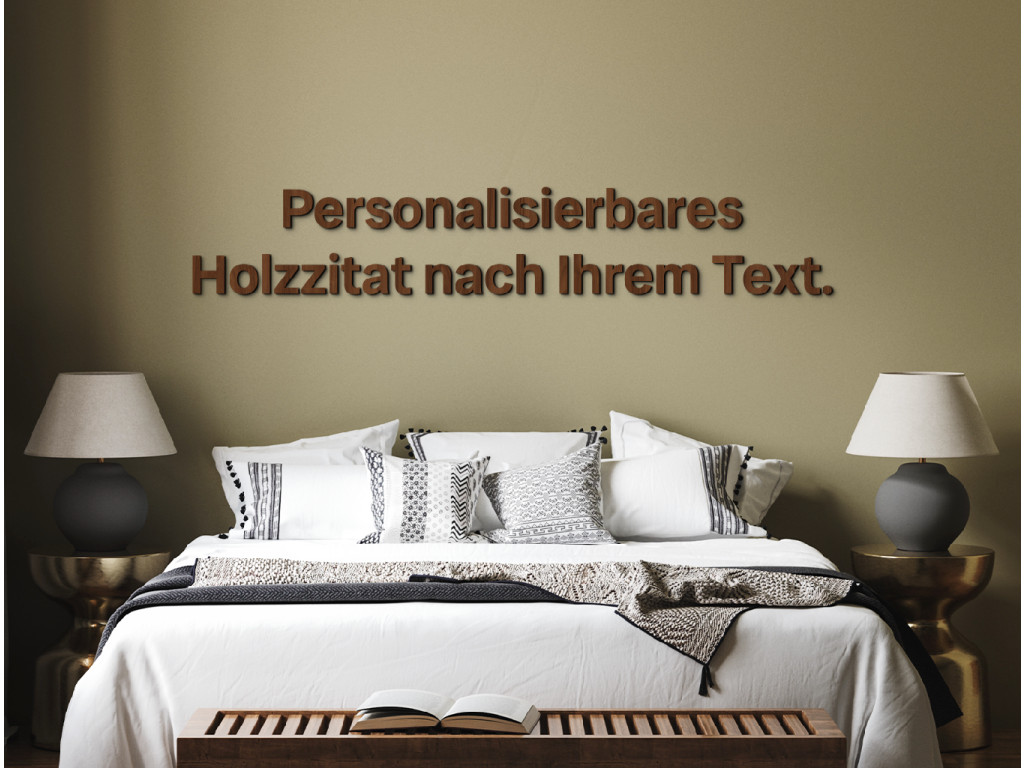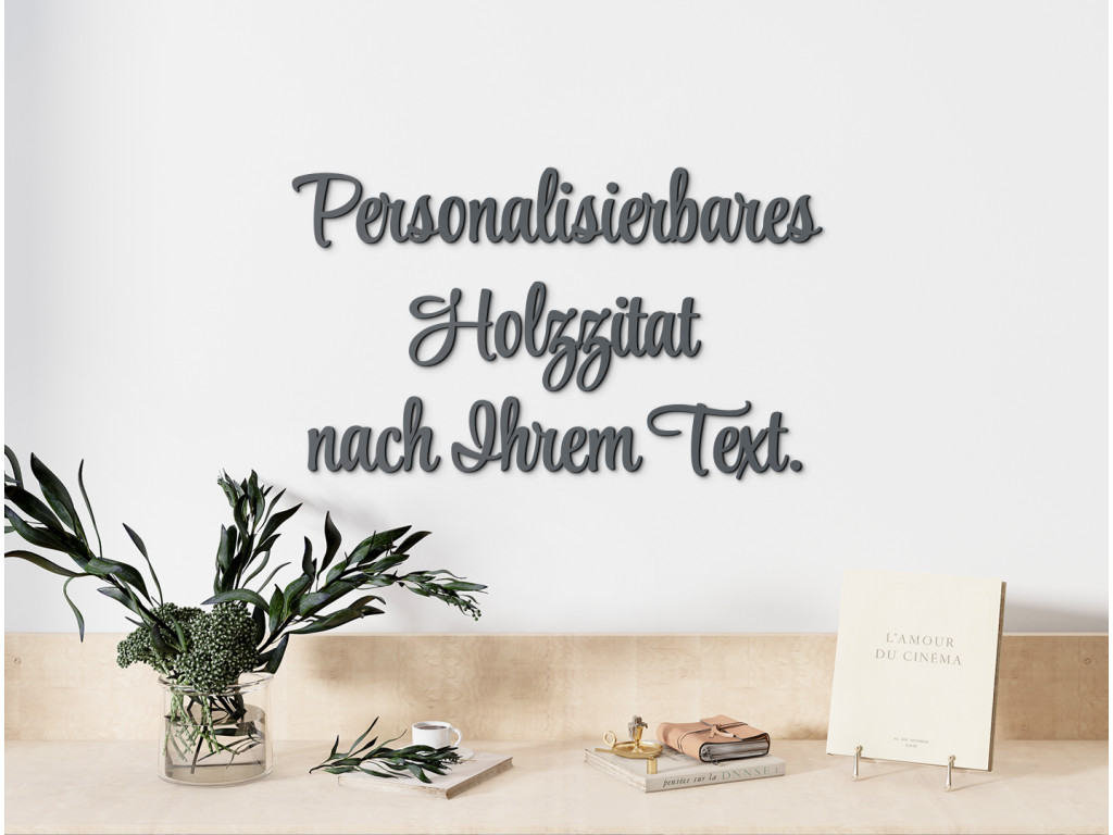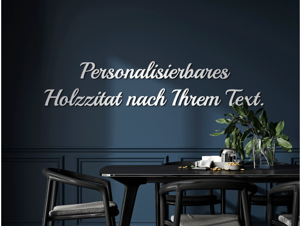 Ein maßgefertigtes Zitat ist eine der einfachsten Möglichkeiten, um den eigenen vier Wänden einen persönlichen und inspirativen Touch zu verleihen. Zeigen Sie Ihre Gedanken, Werte oder Ihre Lieblingsmotivationssprüche durch ein hübsches und elegantes Zitat.