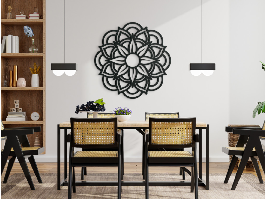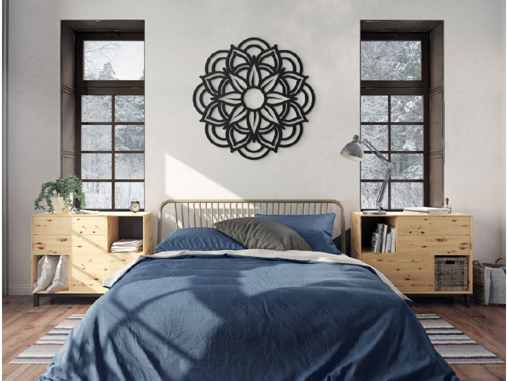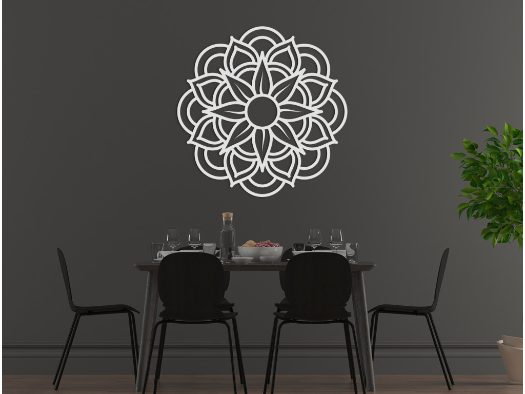 Das dekorative Mandala wird in Ihrem Raum eine dekorative und für andere auch eine meditative Funktion erfüllen. Sie können es über der Couch, der Kommode oder das Bett hängen. Gönnen Sie Ihrer Einrichtung eine friedliche und ungestörte Atmosphäre.
