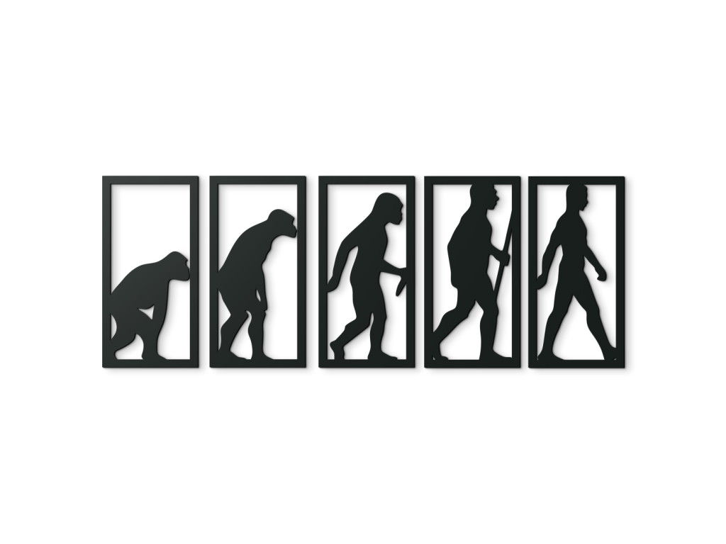 Das mehrteilige Bild Evolution symbolisiert die lange Reise des Menschen von den primitiven Vorfahren bis zur modernen Existenz. Jeder Teil hebt eine andere Phase des Fortschritts hervor und schafft so eine beeindruckende, zusammenhängende Geschichte. Diese einzigartige Assemblage ist ein eindrucksvolles visuelles Element, das zum Nachdenken über unsere gemeinsame Vergangenheit anregt.